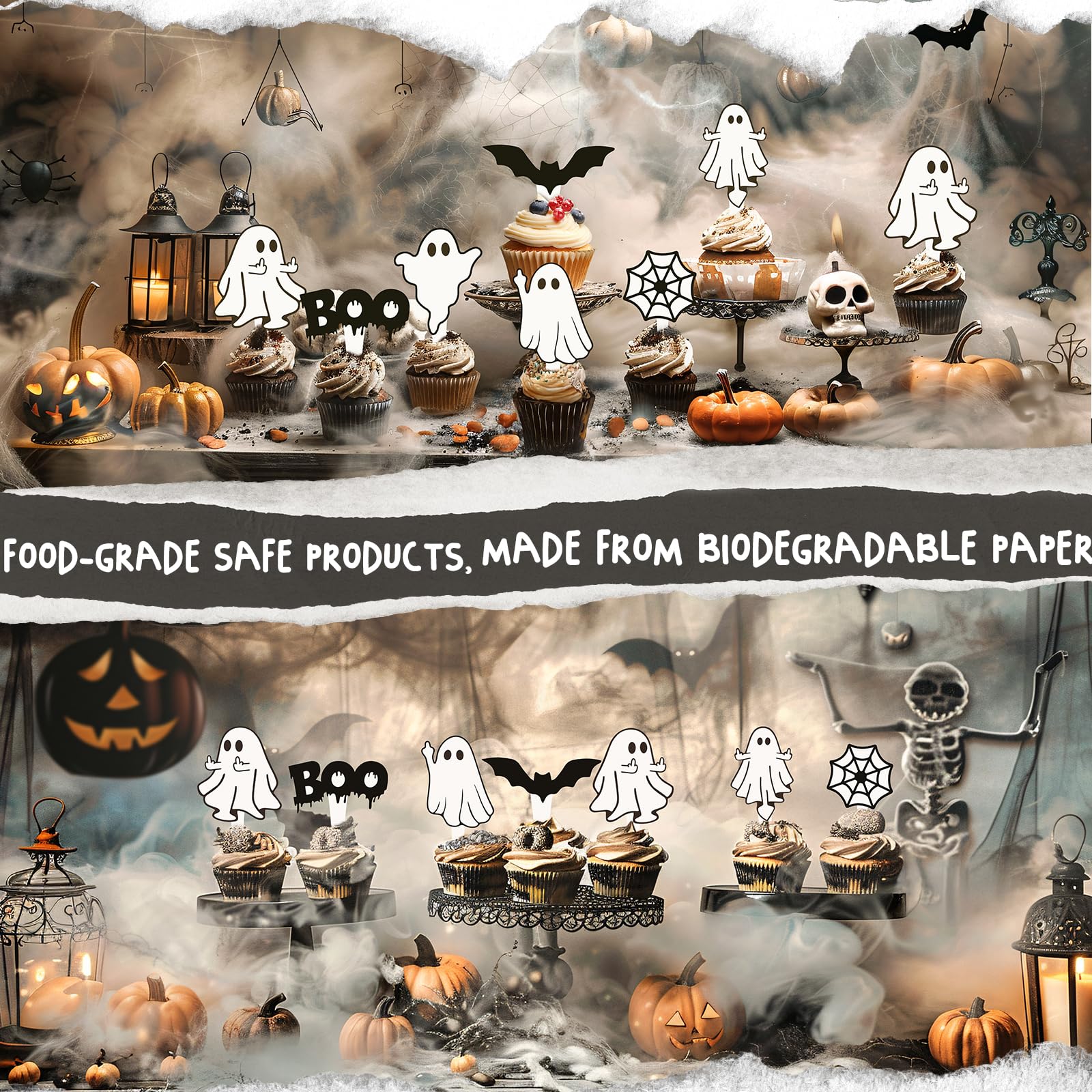 40 Pcs Ghost Cupcake Toppers - Spooky Party Decorations for Ghost-Themed Birthdays, Baby Showers, and Halloween Cakes