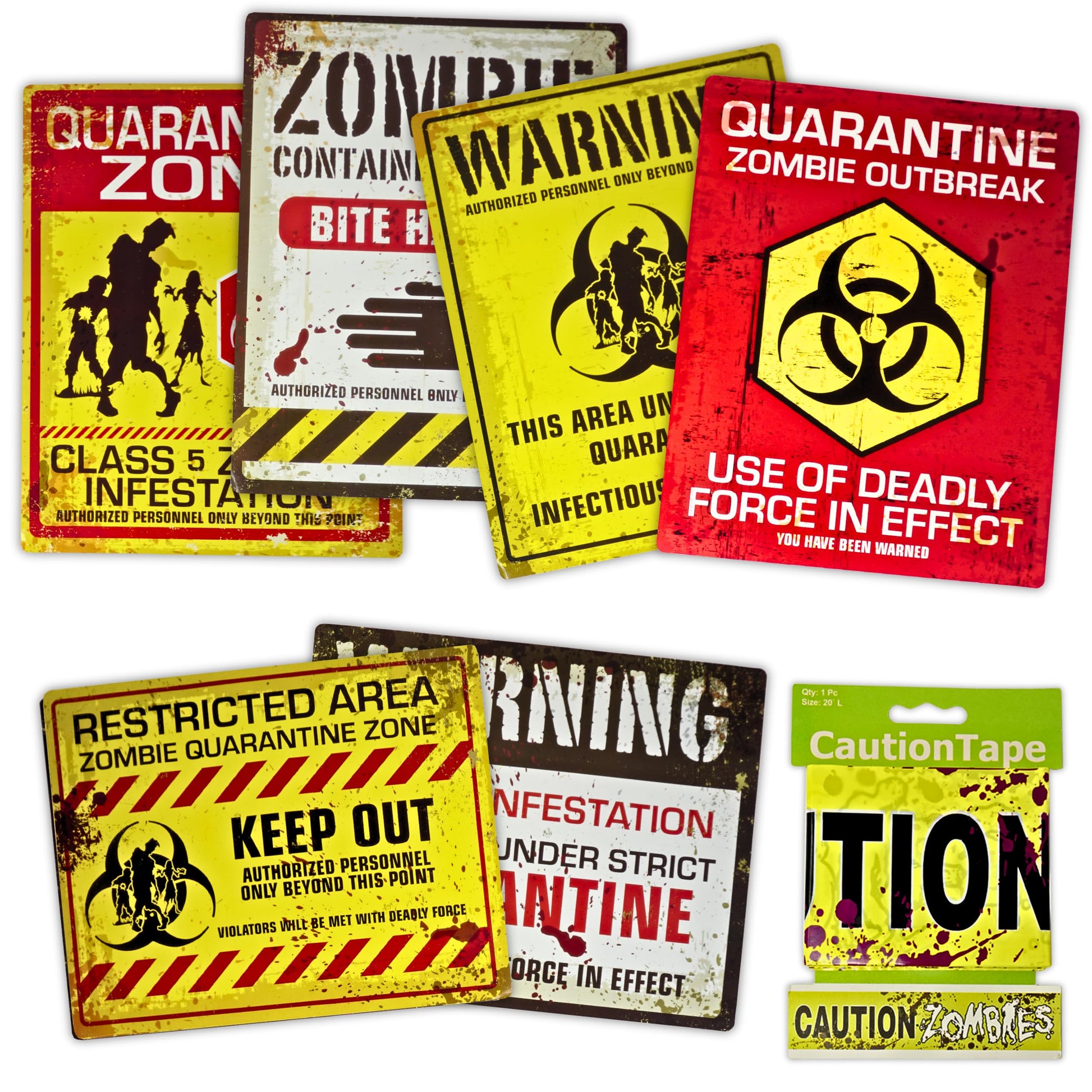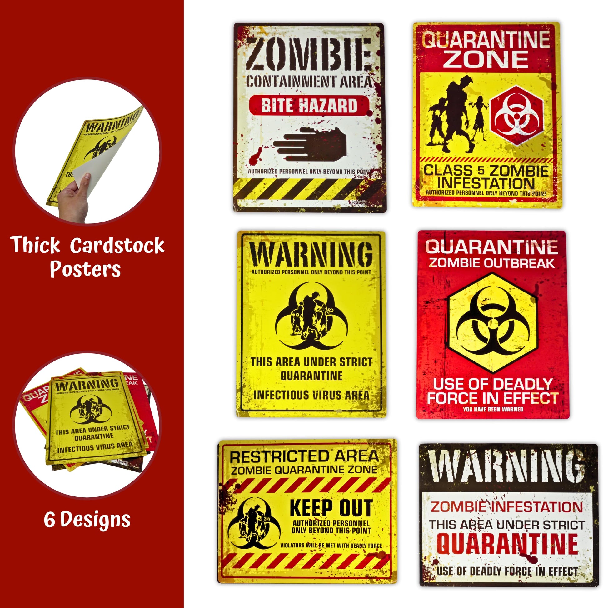 • ZOMBIE-PROOF YOUR PARTY: Ready to transform your party into a no-go zone? This killer combo of 6 creepy zombie warning signs cardstack (11x14'') and a 20ft long caution tape roll is here to do the trick. Made from thick cardstock and durable plastic, these halloween decorations are built to last through the night—no matter how many ghouls try to break in!