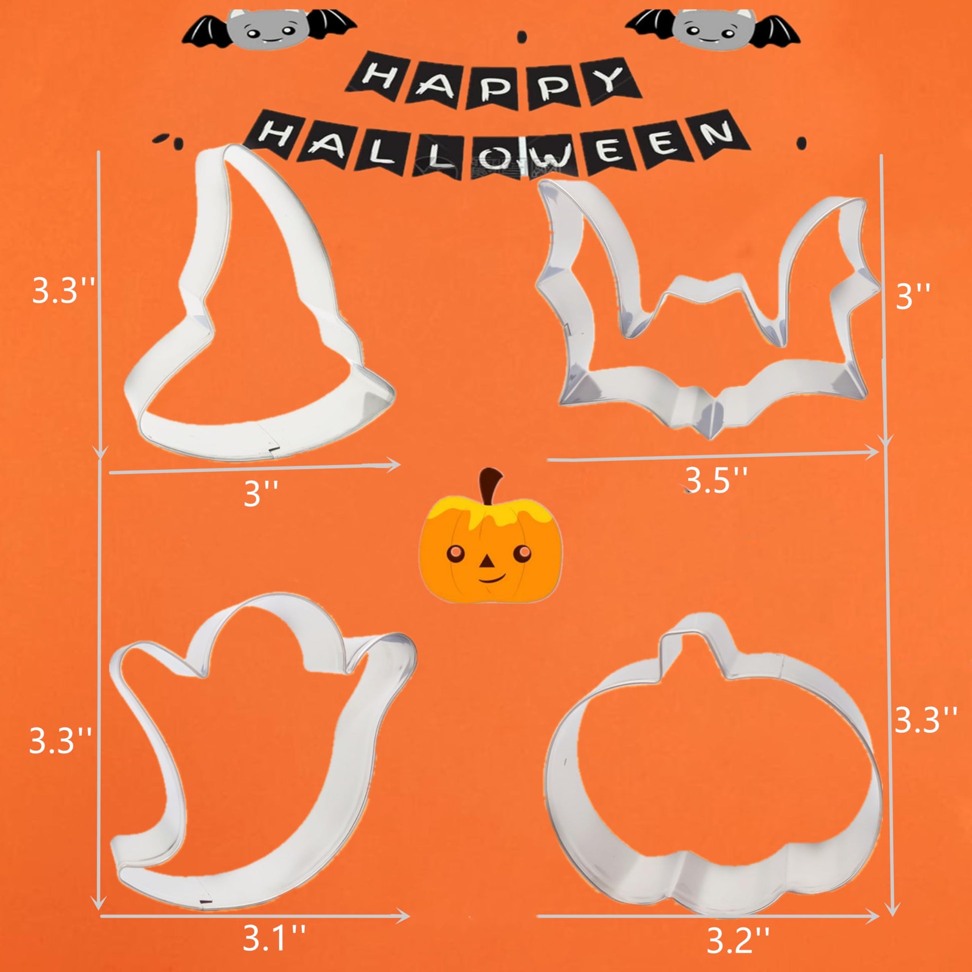 • 4PCS Large Halloween cookie cutters, including shapes of pumpkin, bat, ghost, wich's hat cookie cutters, perfect for creating adorable Halloween cookies with your family or friends.