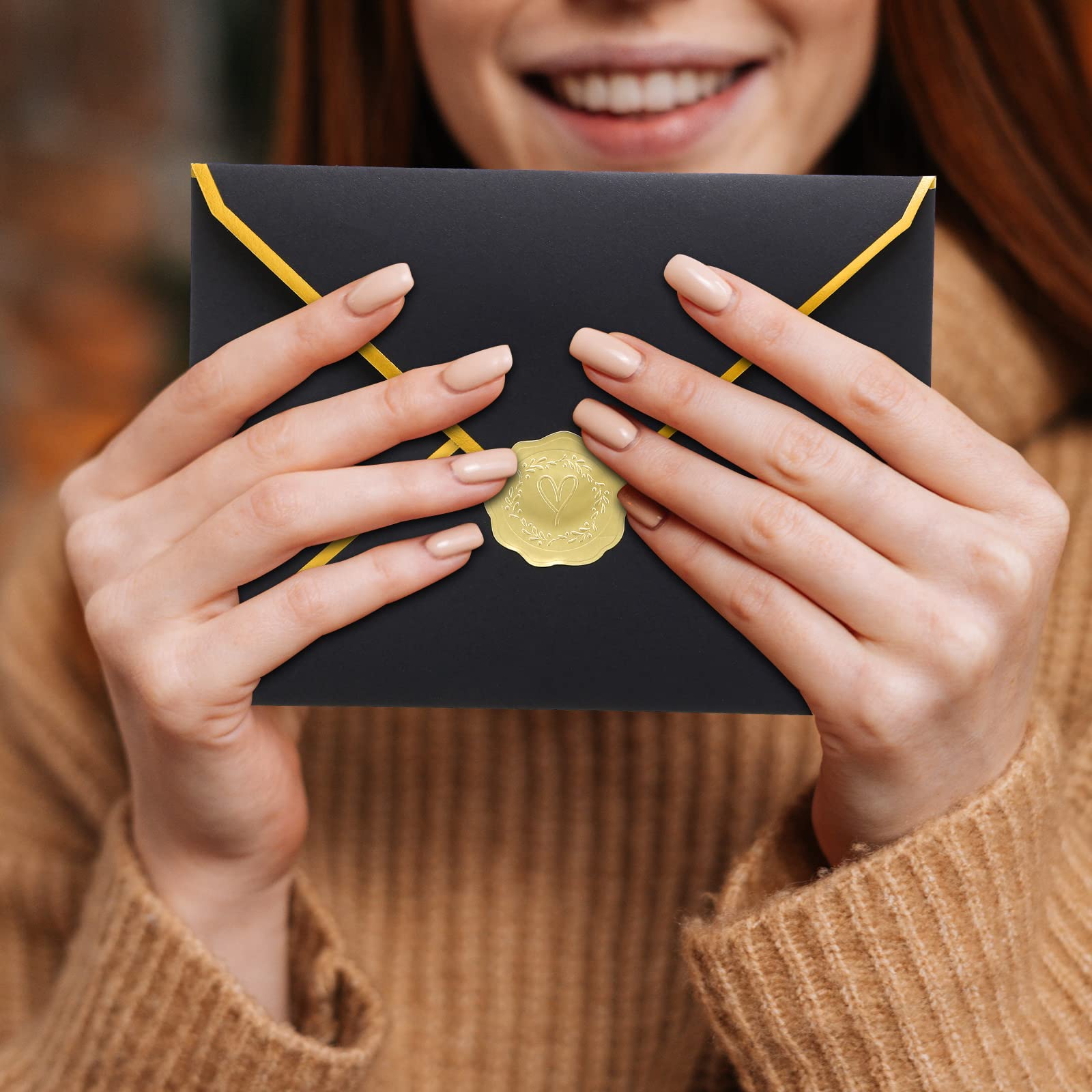 • Nice Combination: the A7 envelopes set includes 50 pieces V shaped 5 x 7 envelopes with gold border; The self adhesive envelopes are befitting for your 5 x 7 inches greeting cards, wedding invitations, business notes and more; There also comes with 50 pieces heart shaped embossed wax seals, which can be put into use separately or in combination to meet your daily use and replacement demands