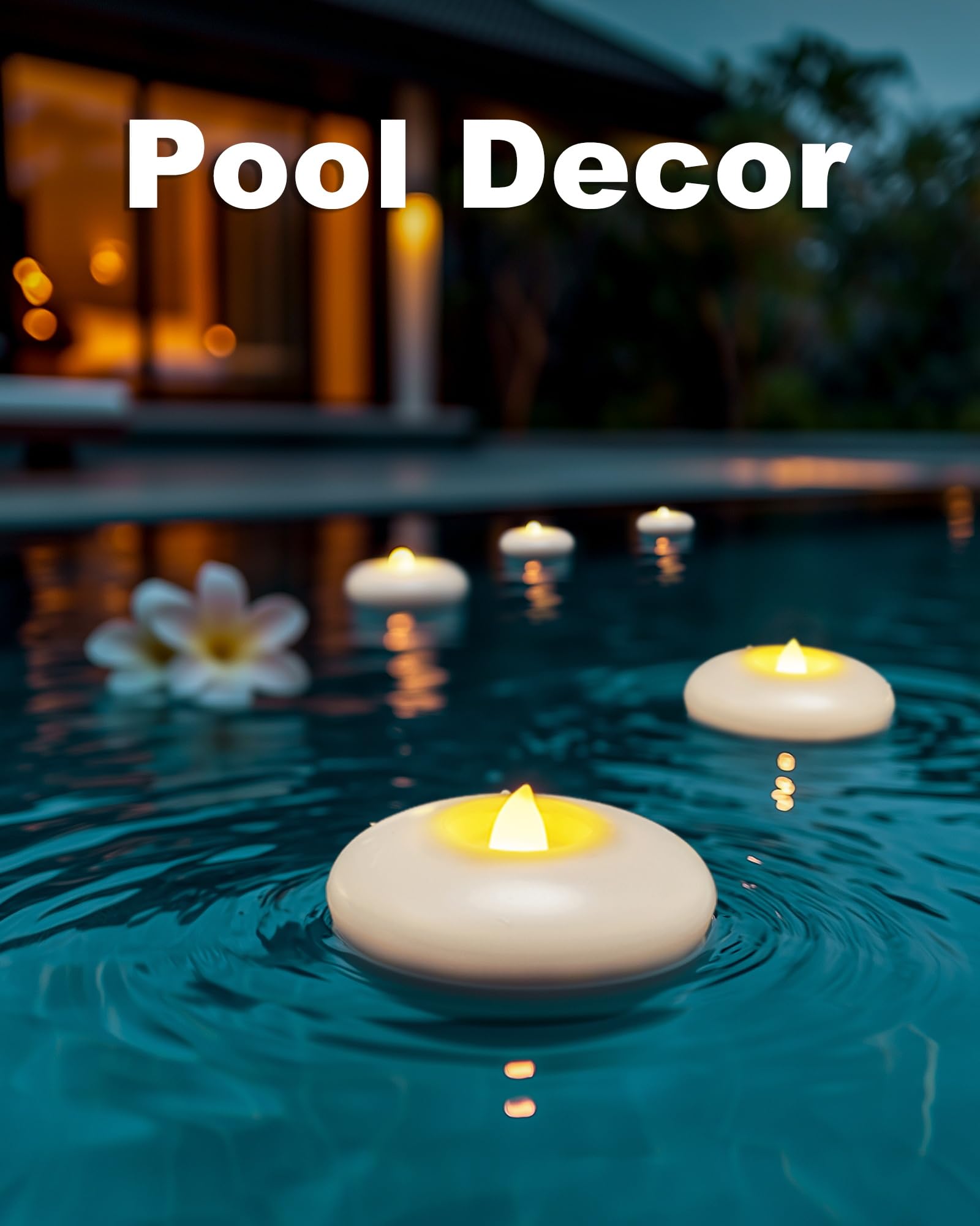 • Safety First: The Floating Candles are designed with safety in mind. these candles eliminate the risk of accidental fires, such as curtains, furniture, or even in a pool. They are perfect for both indoor and outdoor use.