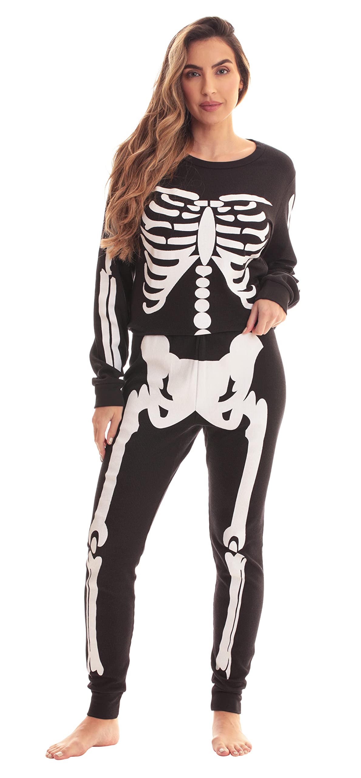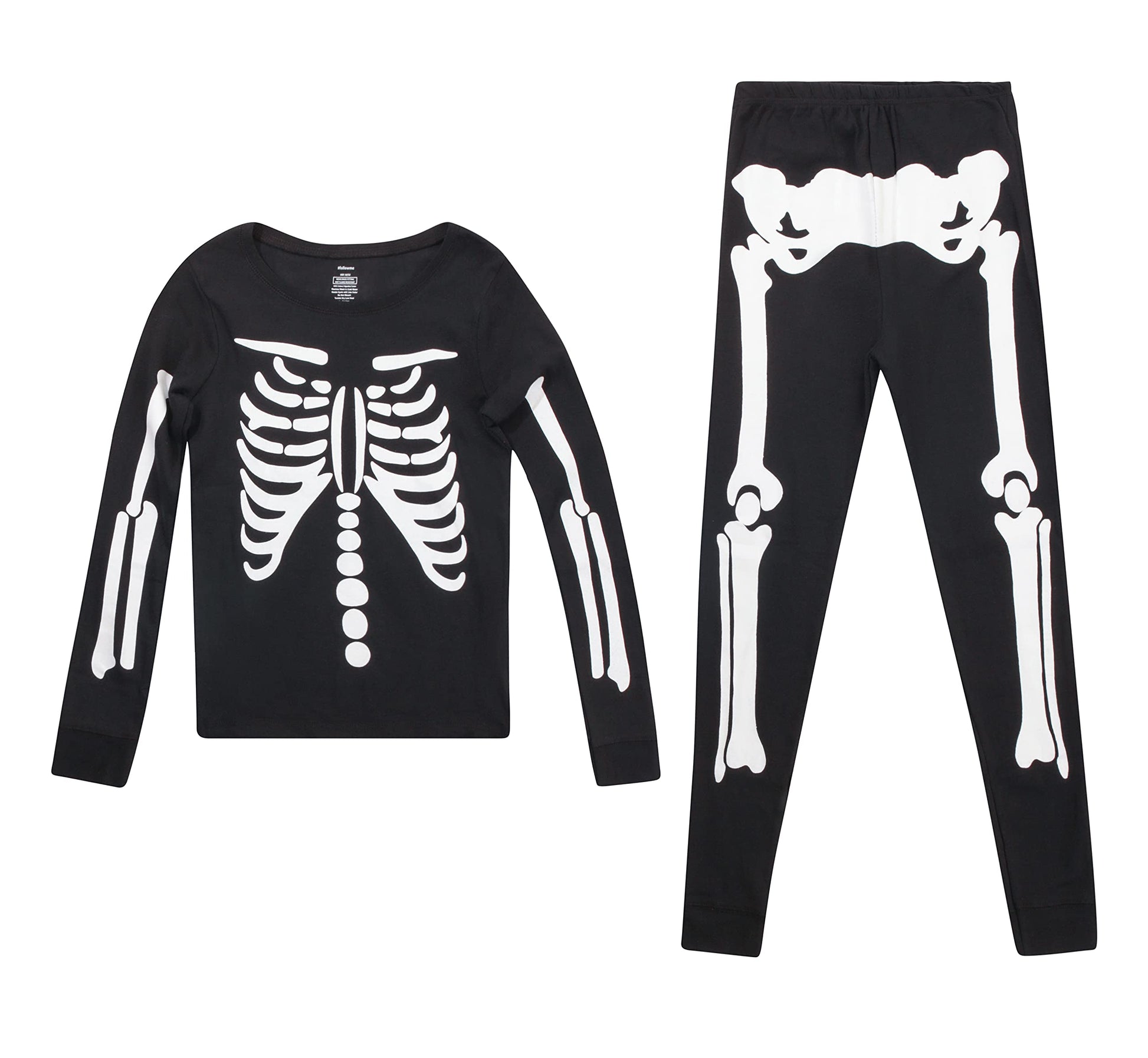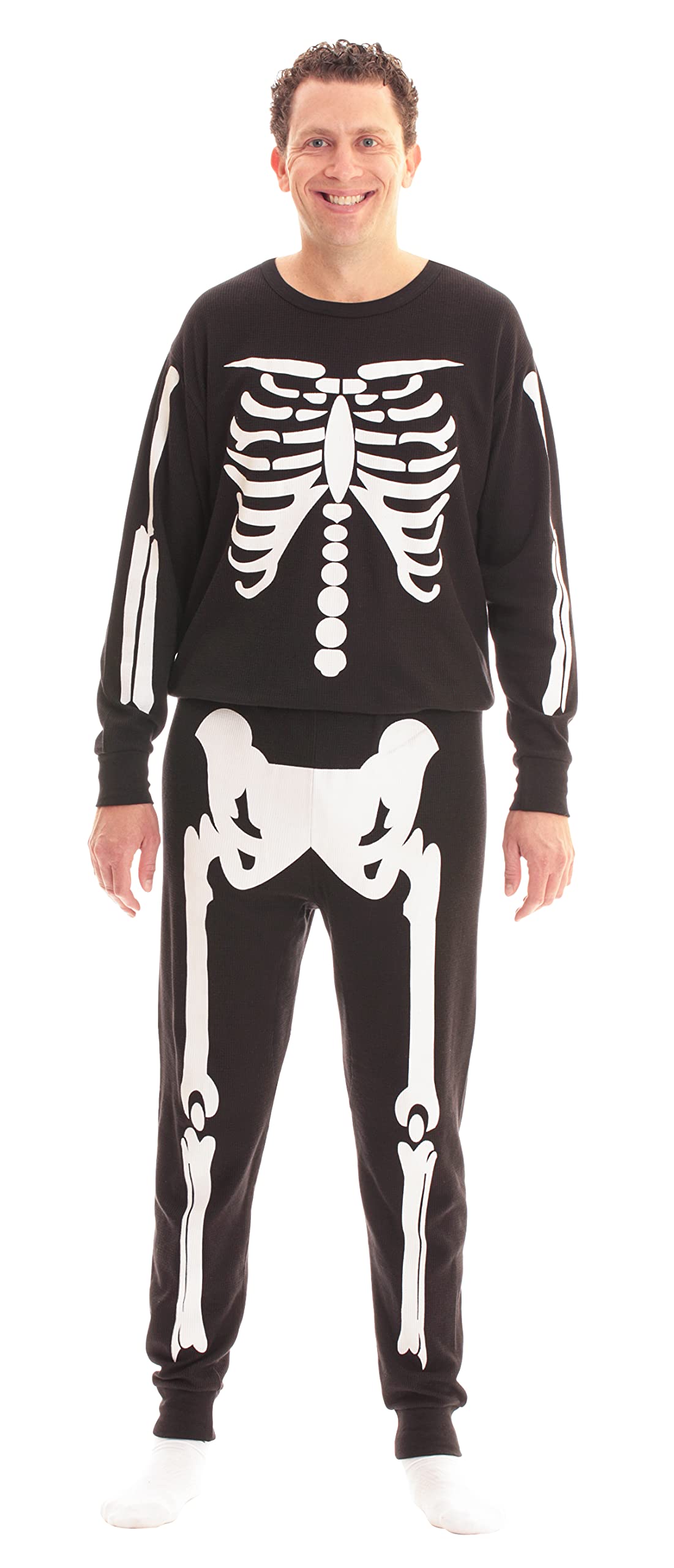 TRICK OR TREAT: Kick back in striking spooky fashion in these skeleton pjs. Perfect for Halloween, or simply comfortably lounging away, these 100% Cotton pajamas make that night in or out a standout affair.