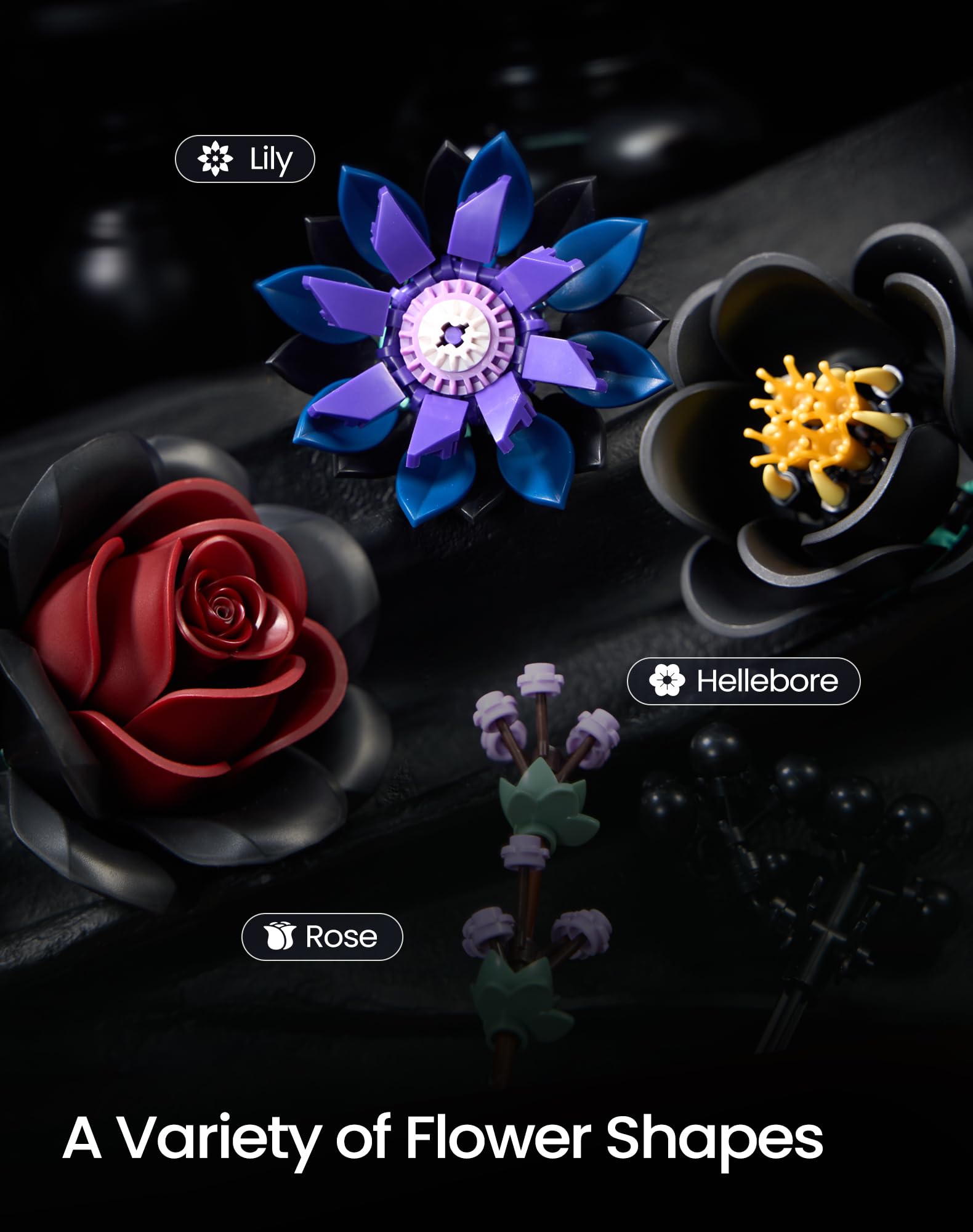 • [Dark Floral Collection] - The uniqut black and red symbolizes mystery, distinctiveness, and the extraordinary, complements iATOM’s adult flower sets with a unique and vibrant contrast. Build a stunning, everlasting bouquet that celebrates dreams and the extraordinary