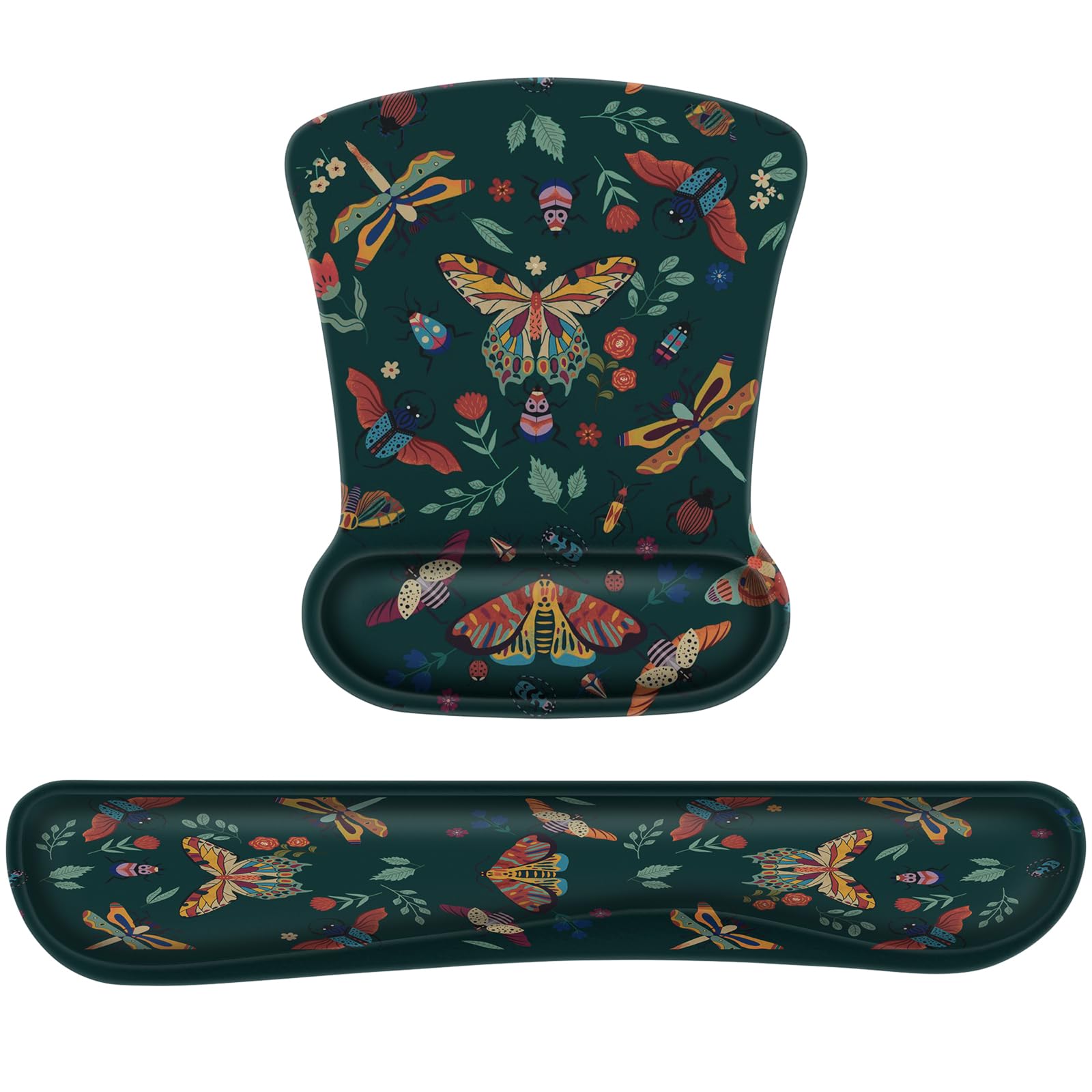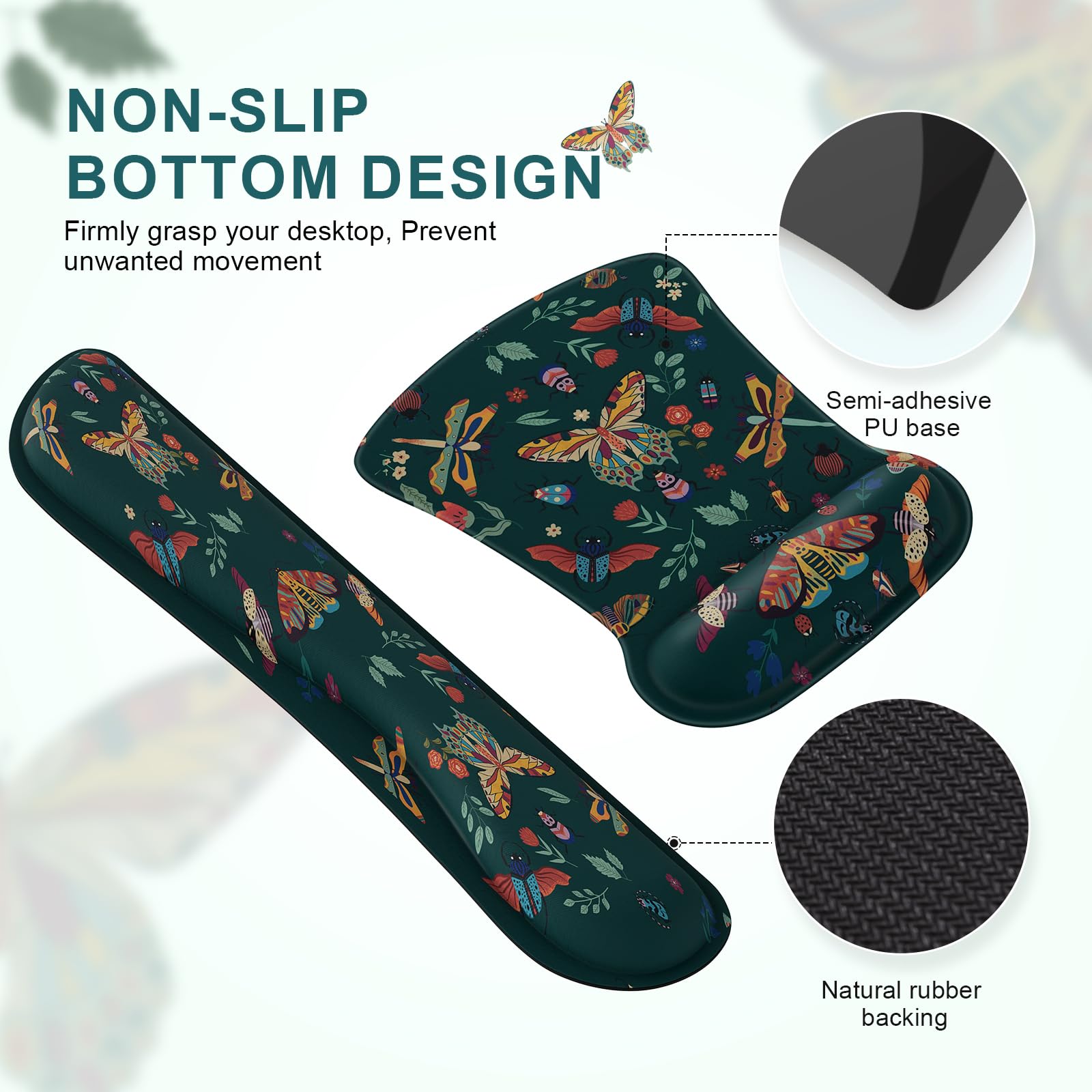iCasso Ergonomic Mouse Pad with Wrist Rest, Keyboard Wrist Rest Mouse Wrist Rest, Made of Memory Foam, Easy Typing and Relieve Wrist Pain for Computer Keyboard Office(Green Butterfly)