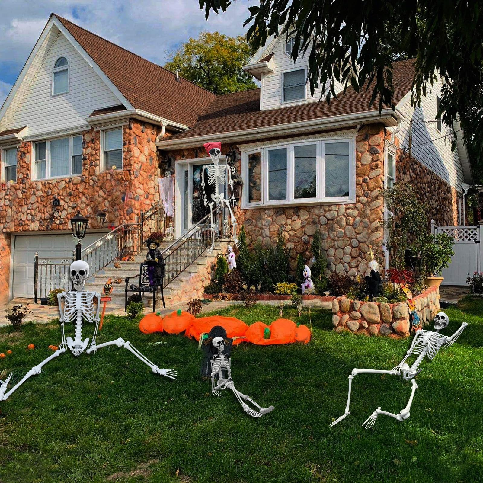 • Halloween Outdoor Statues Includes a 5.4ft" Tall Posable Limbs with Knees Life Size Skeleton