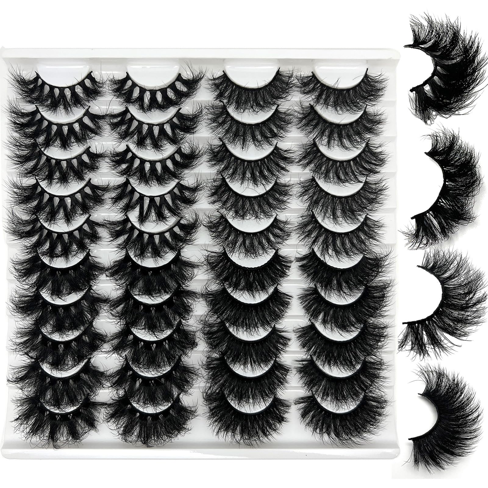 IFSOWDRA Mink Lashes Strip D Curl Volume 20/25mm Long Dramatic Lashes 3D Mink Cat Eye Eyelashes Pack, Wispy False Eyelashes Natural Look (4 Styles)