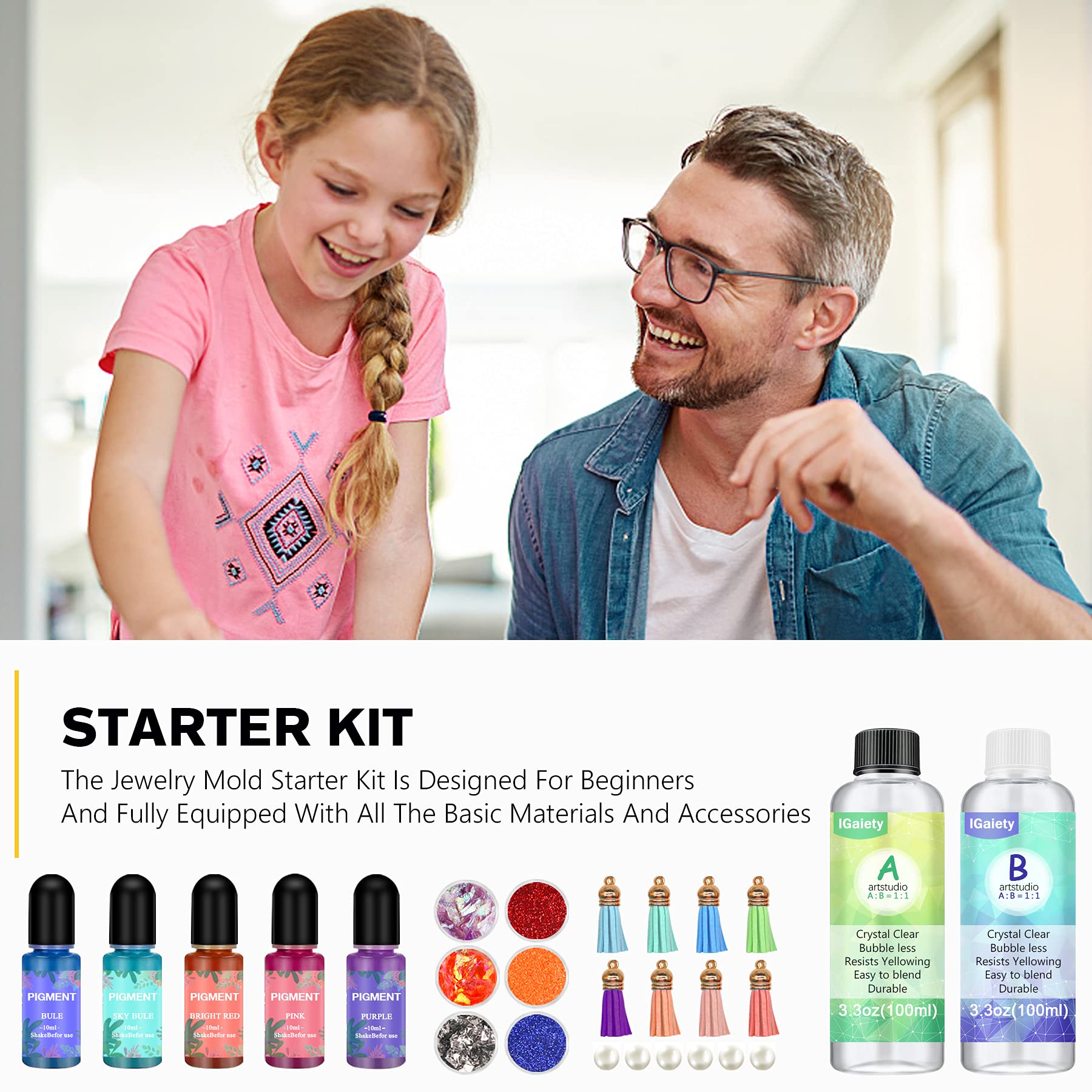 IGaiety Resin Jewelry Making Kit 240 Pcs Silicone Epoxy Resin Mold Keychain Starter Kit Bundle with Epoxy Molds and Pigments Tools for Beginners Adults Jewelry Earring Making