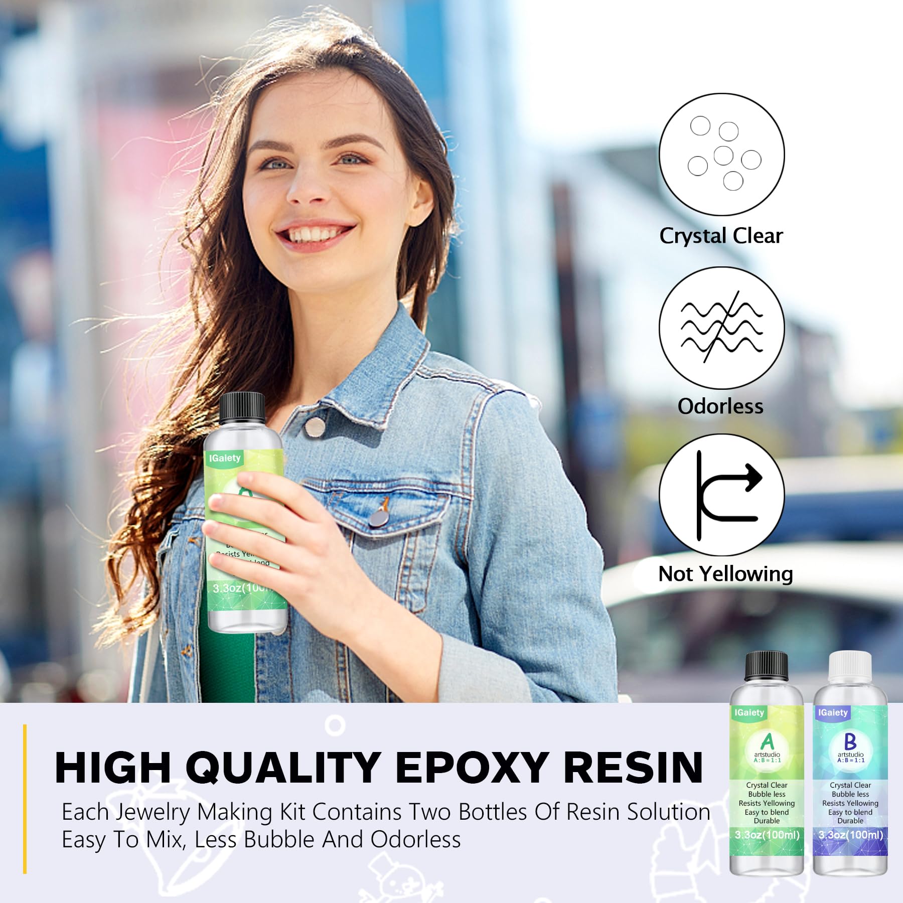 • High Quality Epoxy Resin: Each jewelry making kit include two bottles of resin solution, easy to mix, less bubble and odorless that you can be assured to use this resin jewelry making kit. This jewelry silicone resin is self leveling, ensure your finished product from the jewelry mold is high gloss, smooth and not yellowing.The resin in this resin mold kit is very hard after solidification, and the finished jewelry you make will not be damaged,don't worry to wear the resin jewelry in daily life