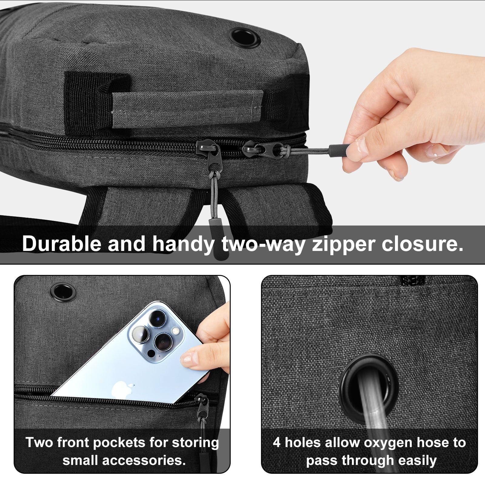• Four Hose Outlets: We specially designed 4 small holes allow you to pass the oxygen hose through easily and reasonably, preventing it from getting tangled and knotted when you use it. The two-way zipper closure design is very convenient to open and close the d tank oxygen bag.