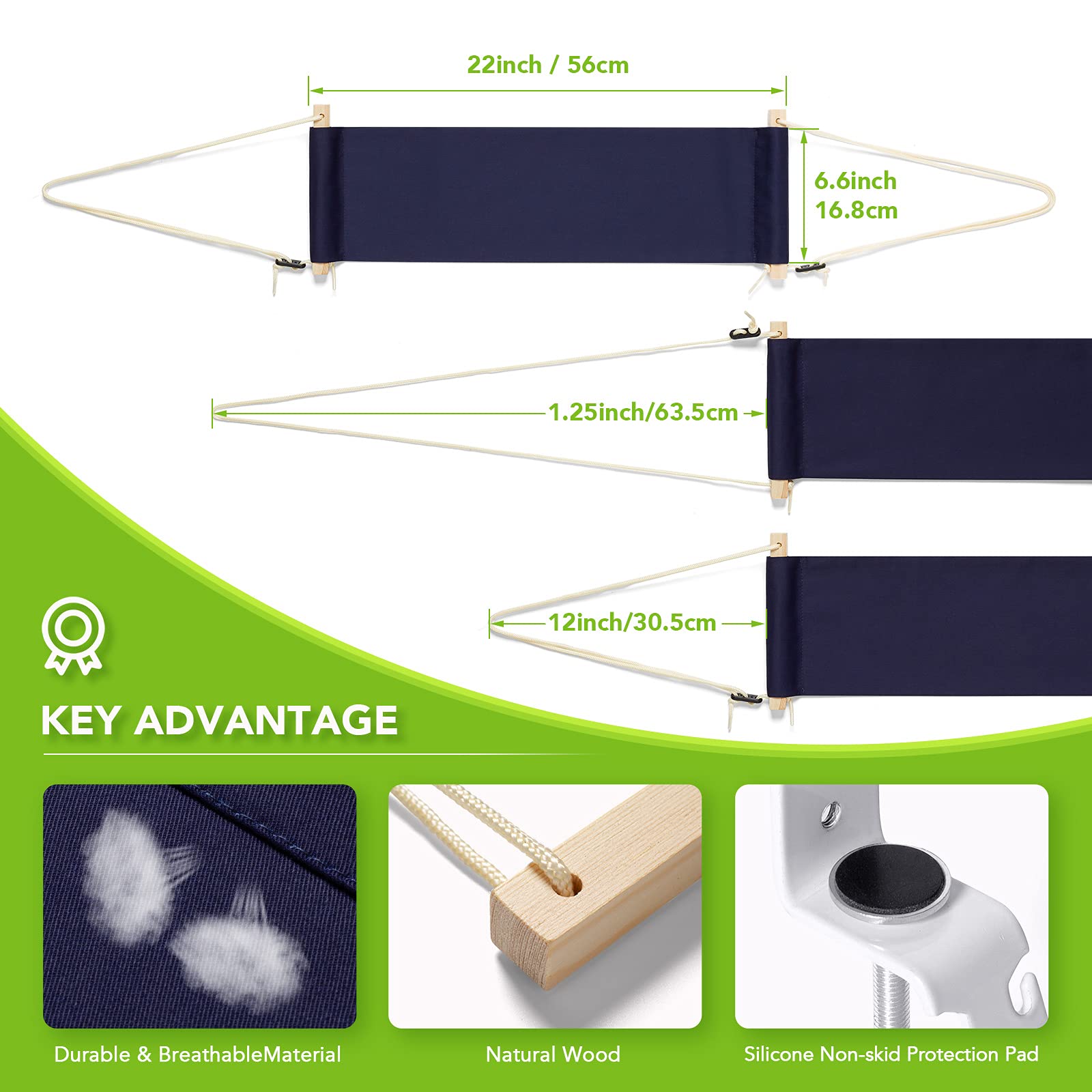 • Premium Quality: The Footrest under Desk Hammock is made by 100% premium quality cotton fabric, breathable, soft, non-abrasive, brings your feet soft and cool feeling without worrying about sweating or other discomfort. The package include 1 durable canvas + 2 steel clips + hanging polyethylene rope + wood. Item Size: 22'x 6.6'inches