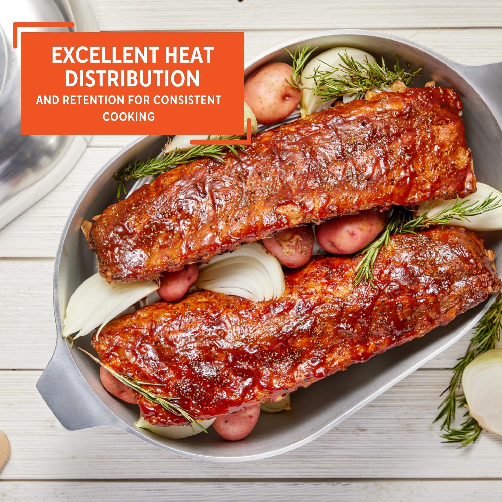IMUSA USA Heavy Duty Cajun Oval Aluminum Roaster 15, Silver