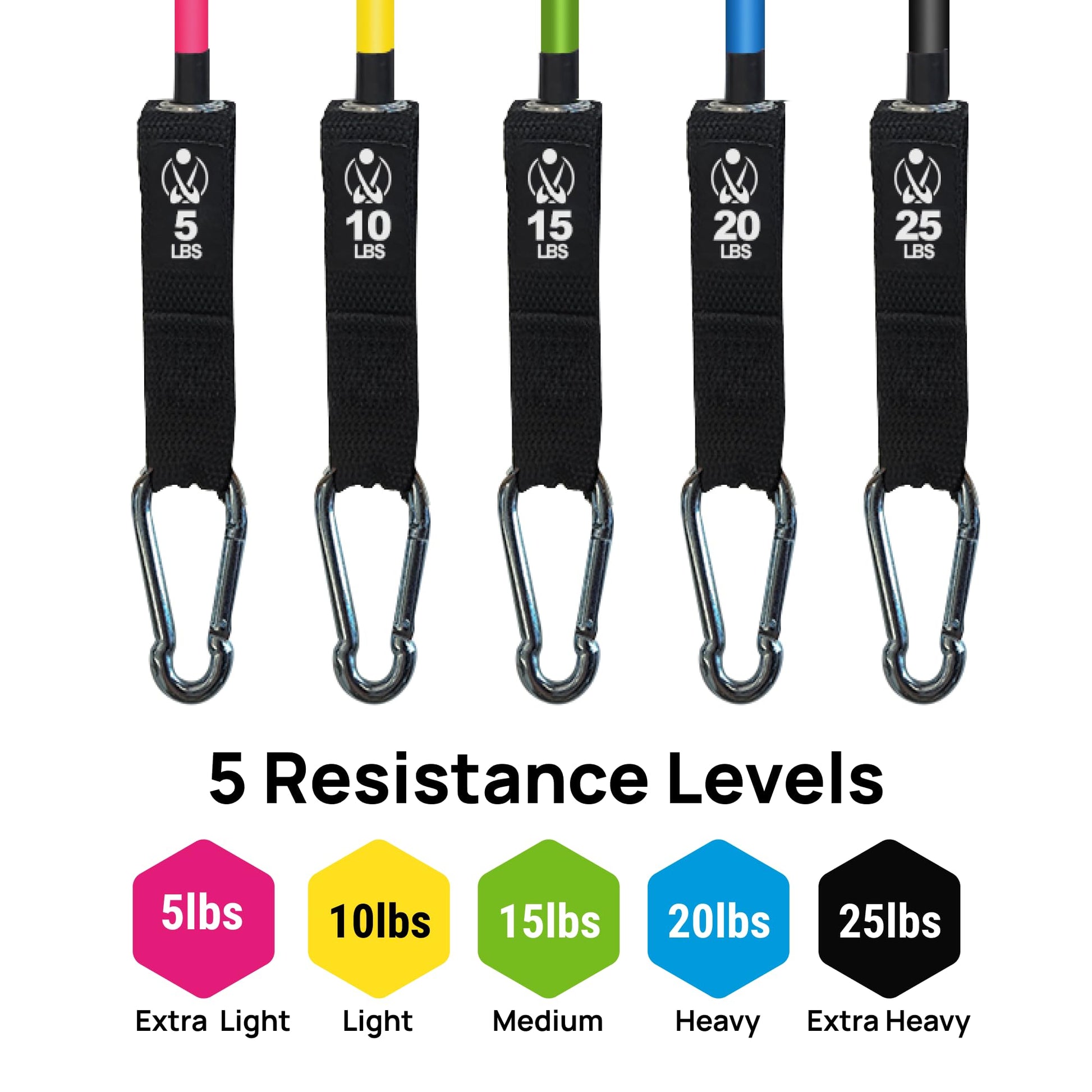 • Complete Home Gym: This set includes 5 resistance bands, 2 soft cushioned handles, 2 ankle straps, 1 durable door anchor, 1 door hanger, 1 carry bag, and a detailed exercise guide, giving you everything you need for a complete body workout anywhere.