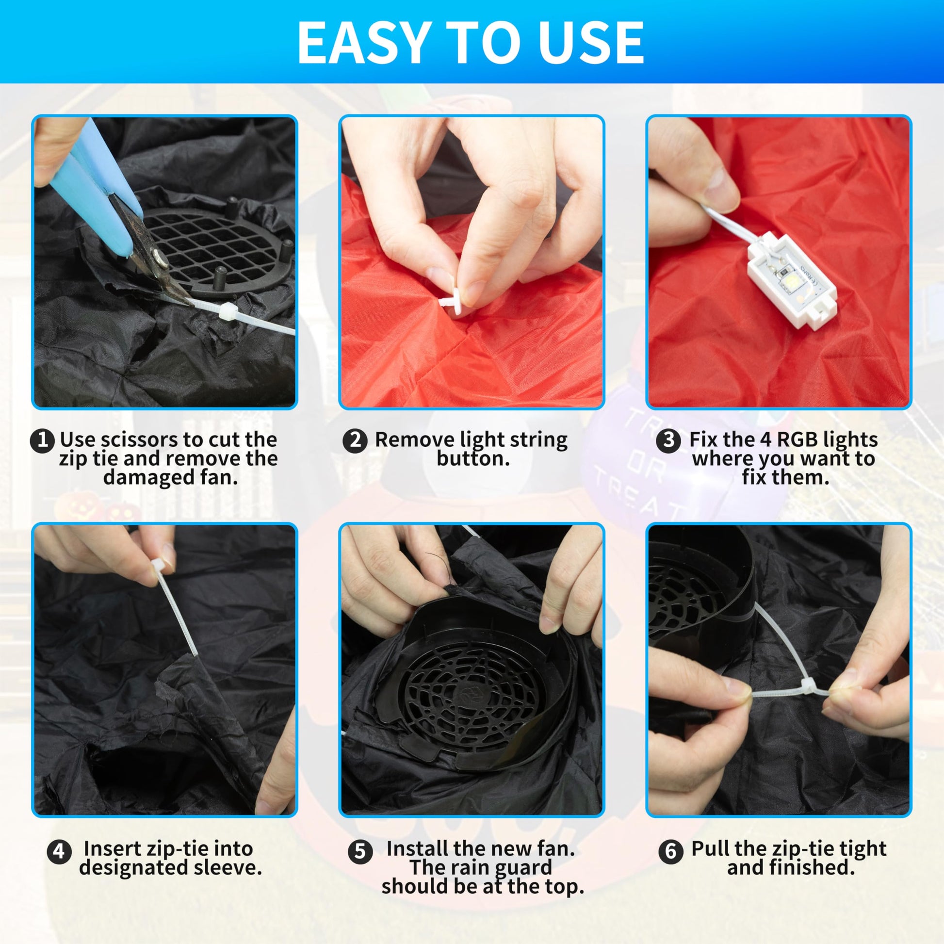• Comes with 4 LED Lights: This mini inflatable blower fan replacement comes with a 6.7-foot string of lights and 4 brightly LEDs to illuminate your inflatable. When night falls, the built-in LED lights glow in the dark, making your inflatable to be seen at night