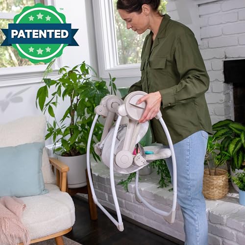 Ingenuity Soothe 'n Delight Compact Portable 6-Speed Plush Baby Swing with Music, Folds Easy, 0-9 Months 6-20 lbs (Cozy Kingdom)