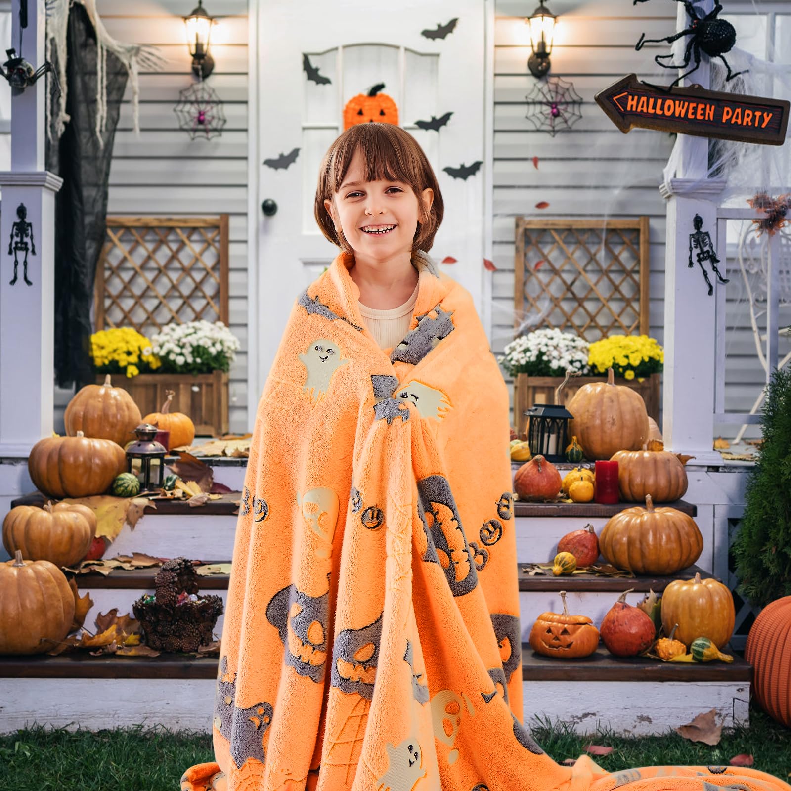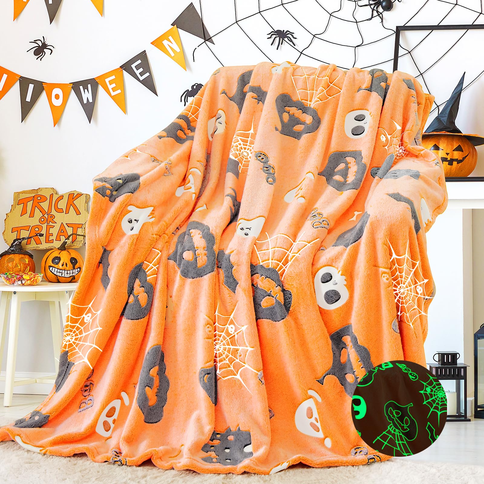 inhand Halloween Blanket Gifts Glow in The Dark Blanket and Toys for Kids Spider Webs Pumpkin Ghost Spooky Plush Soft Halloween Decorations Throw Blanket for Kids to Party Sofa Bed Living Room 50"X60"