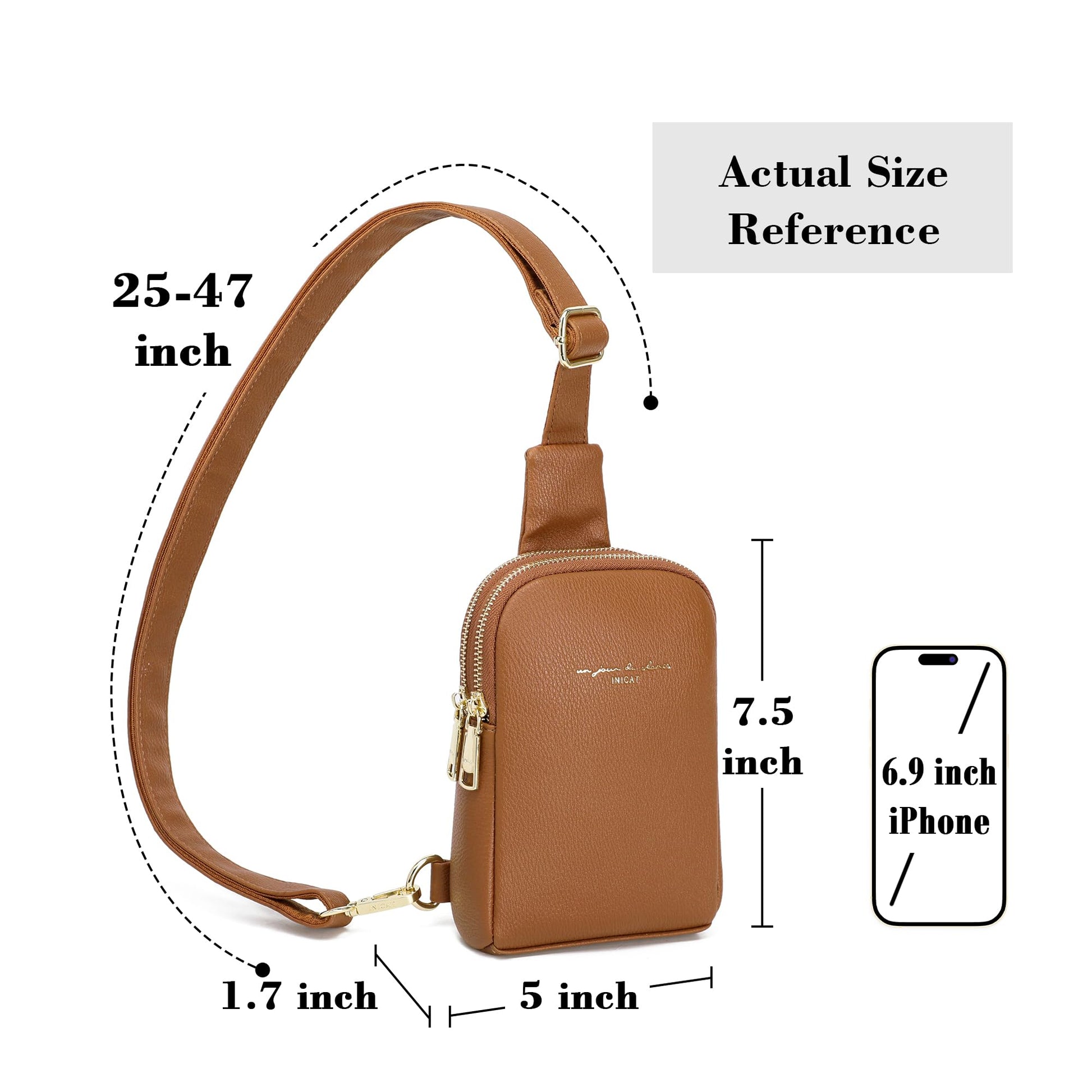 INICAT Travel Small Sling Bag Leather Crossbody Bags for Women Fanny Packs Cross Body Bag for Woman Cross Body Purses(Brown)