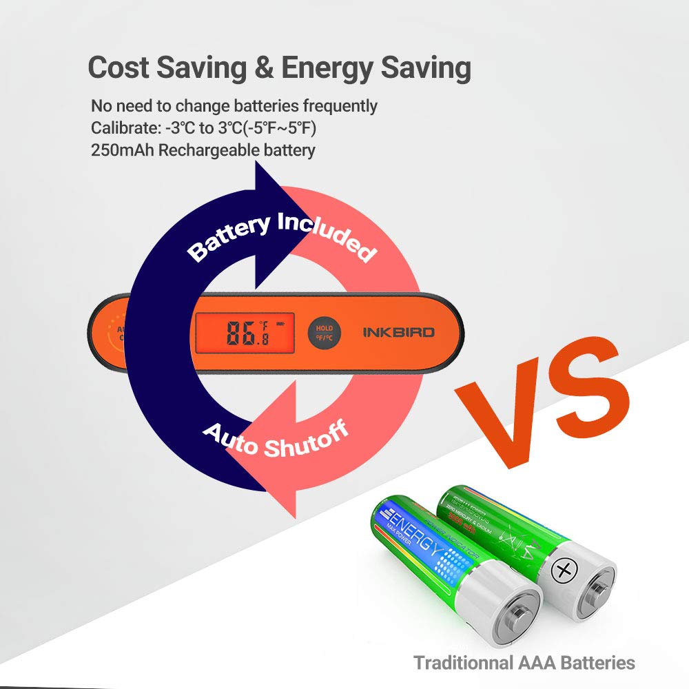 • ✌【Easy Operation & Convenient Storage】: The Kitchen meat thermometer is simple to operate, open it to turn on the device and fold the probe back to turn it off. 180 degree foldaway probe design and the internal magnet make storage conveniently.✔ The Magnetic back make the inkbird candy thermometer possible to adsorb on the surface of household appliances.