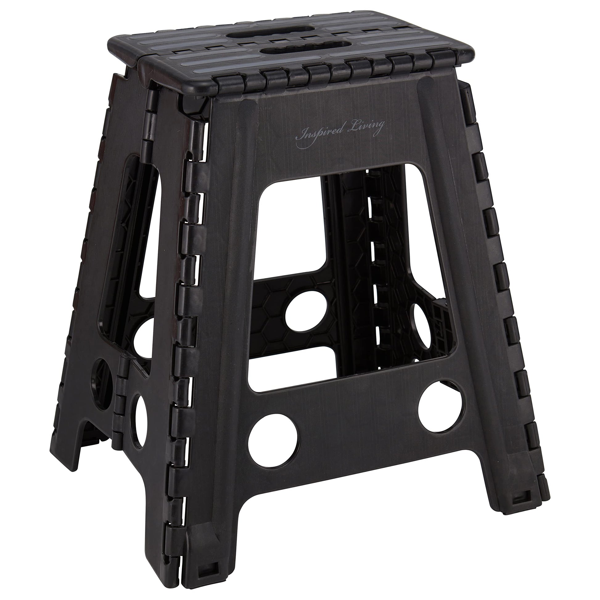 Inspired Living 18" Step Stool, Folding Step Stools for Adults, Plastic Foldable Step Stools Kids, Holds Up to 330 lbs, Collapsible Folding Stool for Kitchen, Bathroom, Bedroom - Black/Grey
