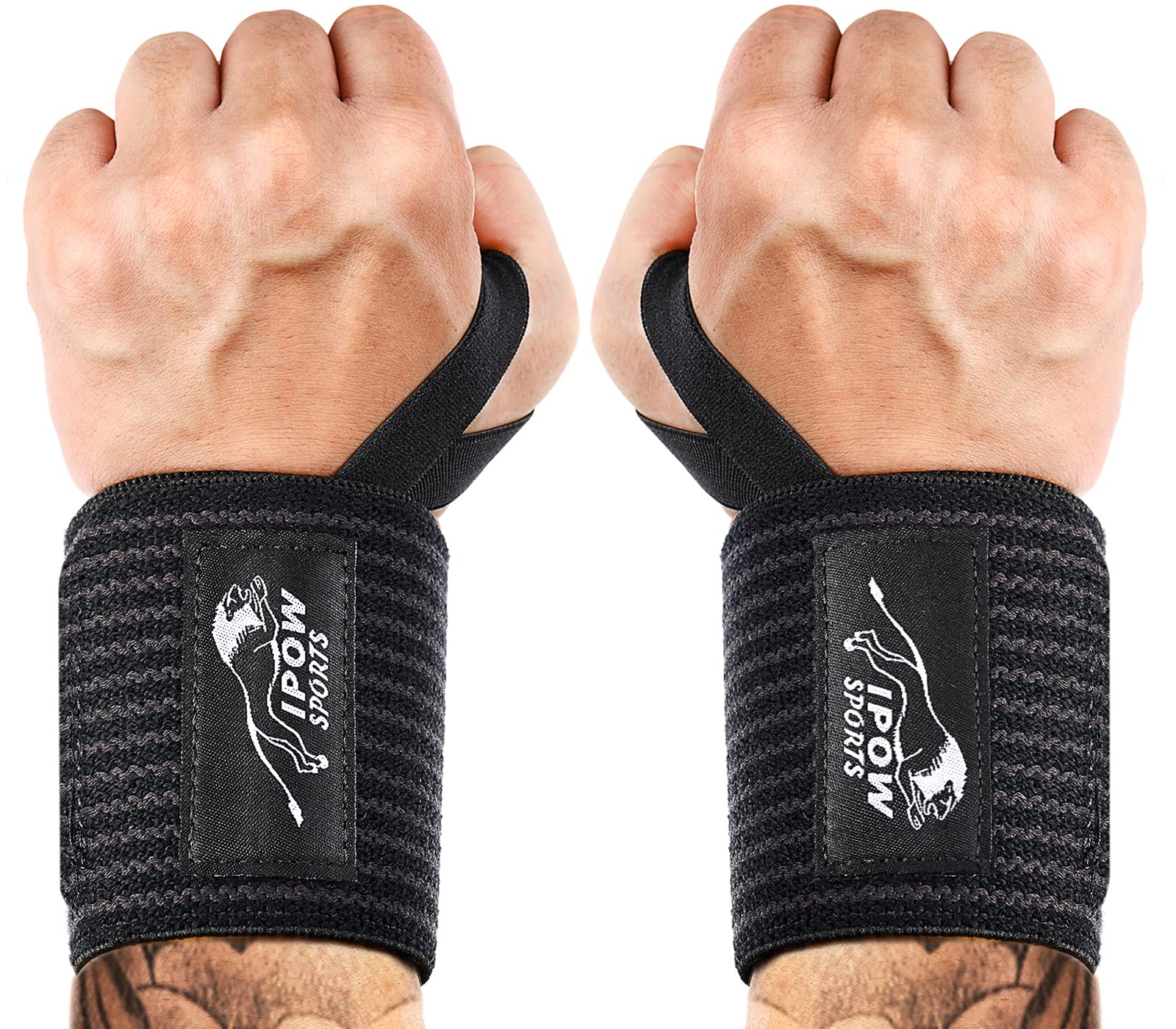 IPOW 18'' Professional Wrist Wraps for Weightlifting 2 Pack(IPF Approved), Heavy Duty Gym Wrist Straps for Working Out, Weight Lifting Wrist Brace for Men & Women, Wrist Support with Thumb Loop for