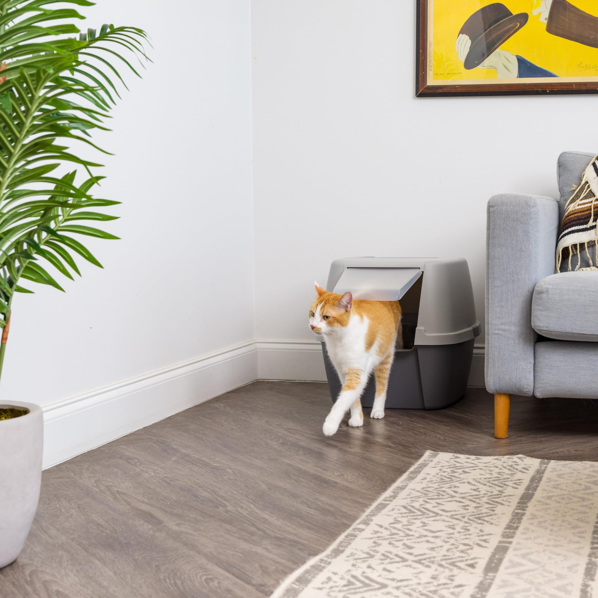 Details: No dogs allowed. Give your cat the privacy they need and keep the dog’s nose out of the litter box with the front entry litter box by IRIS USA, Inc. Your cat will love the easy front entry that provides them with room to move around and you'll love how well it prevents messes and odors from spreading. The hood creates an enclosed space that keeps litter and spraying contained in the litter box and makes cleanup a breeze on your end and the included scoop features a hook that can clip onto the inside of the kitty litter pan, keeping it well within reach for whenever you need it. Let's make life a little easier for all.