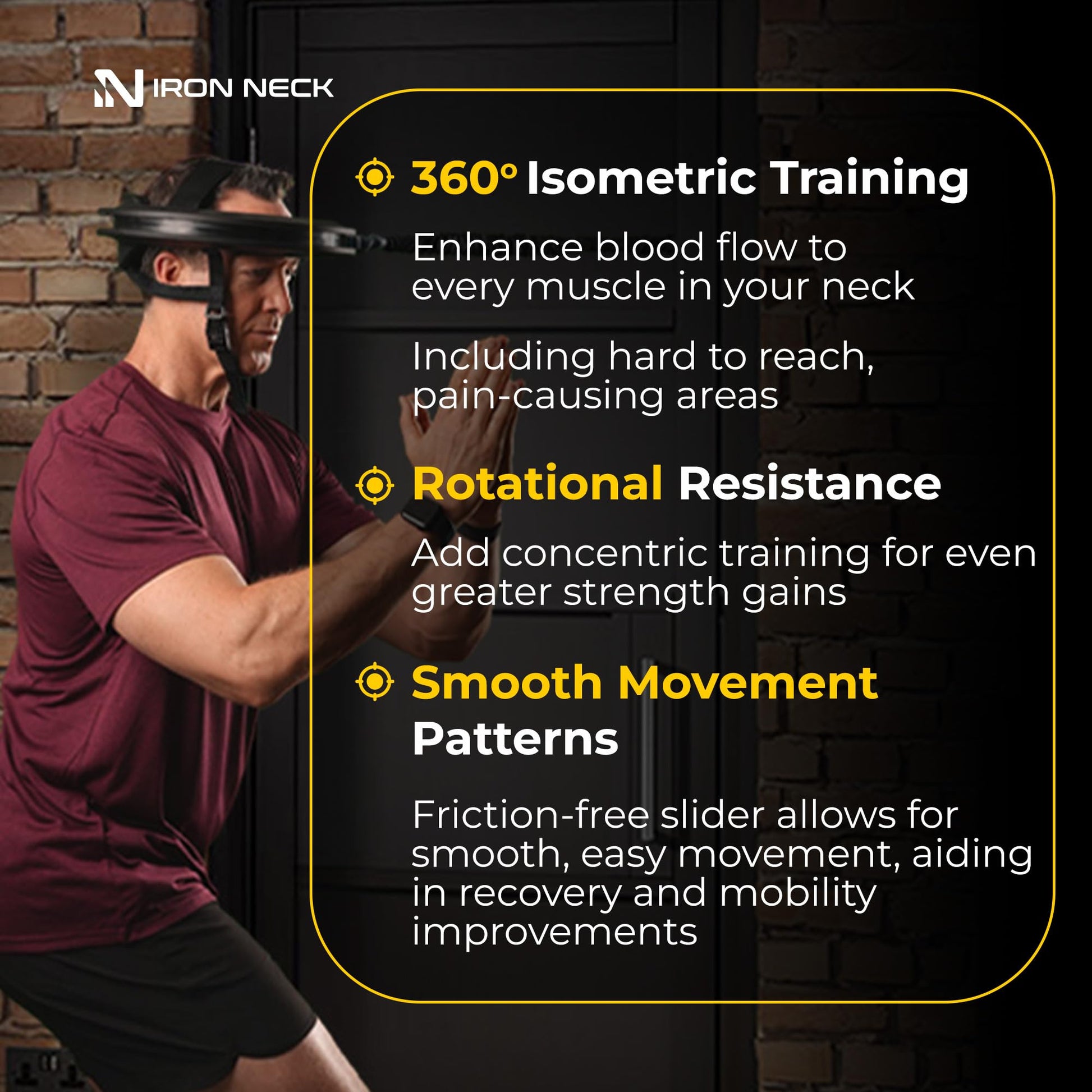 • Advanced Neck Trainer with 360° Isometric Training: The Iron Neck 3.0 delivers a superior neck strengthening experience with smooth movements, custom resistance and targeted neck training. A strong neck can help with neck pain relief, muscle imbalances and mobility by building neck strength and range of motion.