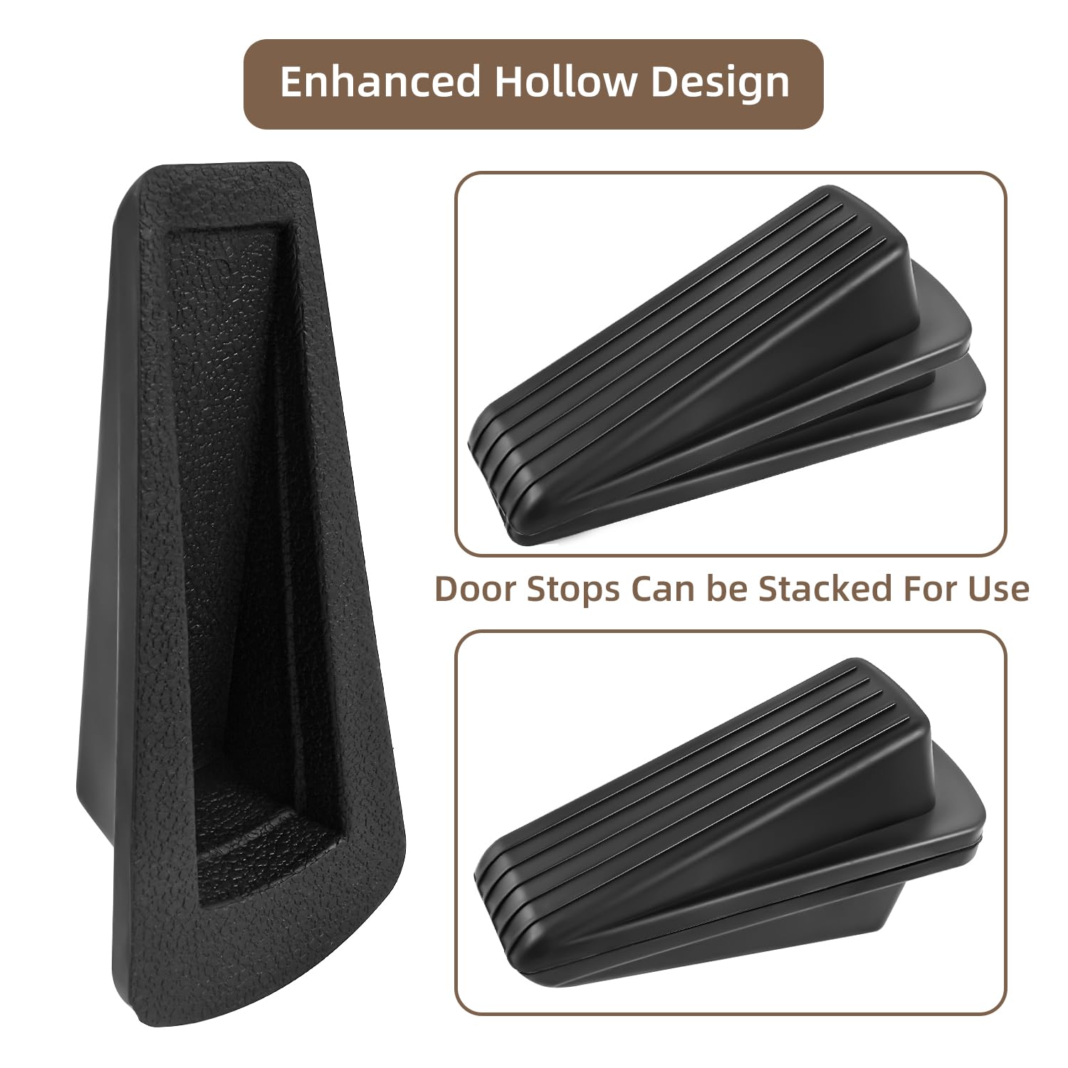 • STACKABLE DOOR STOP WEDGES: These rubber door stops rely on a sloped design to keep doors from closing on their own. They fit under most door gaps if you double them back to back, and will withstand daily use without cracking apart. Reinforced skirting around security door stoppers and the enhanced hollow design which enables, Provides Sturdy Support for Door Gaps.