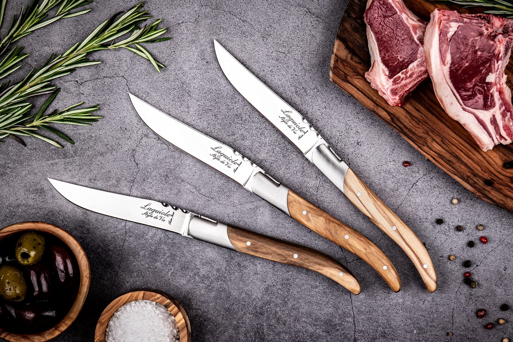Laguiole Style de Vie Steak Knives, Luxury Line, 6 pieces, Olive Wood, in giftbox