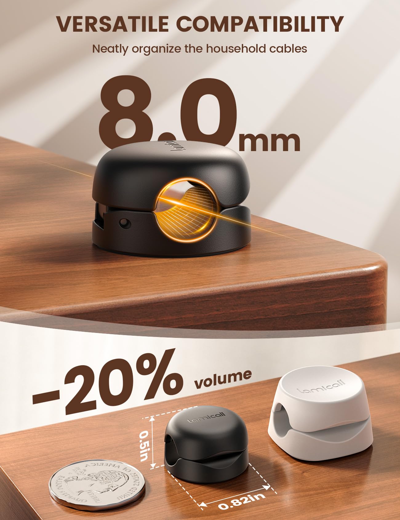 • 【Smaller & Space-Saving Design】 0.82'(L) X 0.82'(W) X 0.50'(H). Weight: 3g. Our small cord organizers can be fit discreetly in tight space. Included with six individual cable organizers, you can effortlessly keep your cables tidy and on track, whether you're organizing your office desktop, nightstand, tableside, table corner, wall, car, or any other surface. These cable clips keep your cords organized and your space looking sharp
