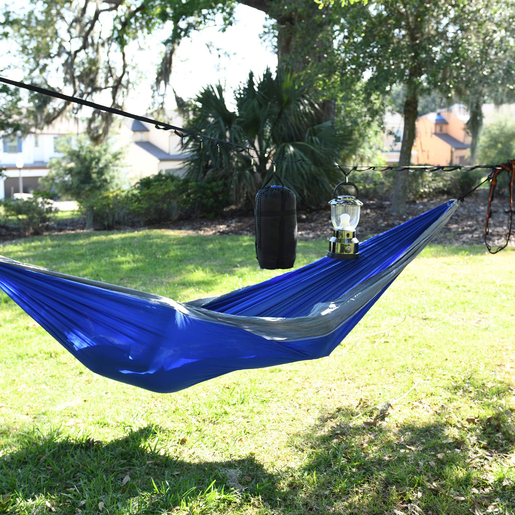 • EASY TO HANG: Wrap the 3 foot long strap to the larger tree and pull tight, then secure the 10 foot long strap to a nearby tree and connect the two straps with the side release buckle OR hang the longest strap from a tree branch for vertical storage.
