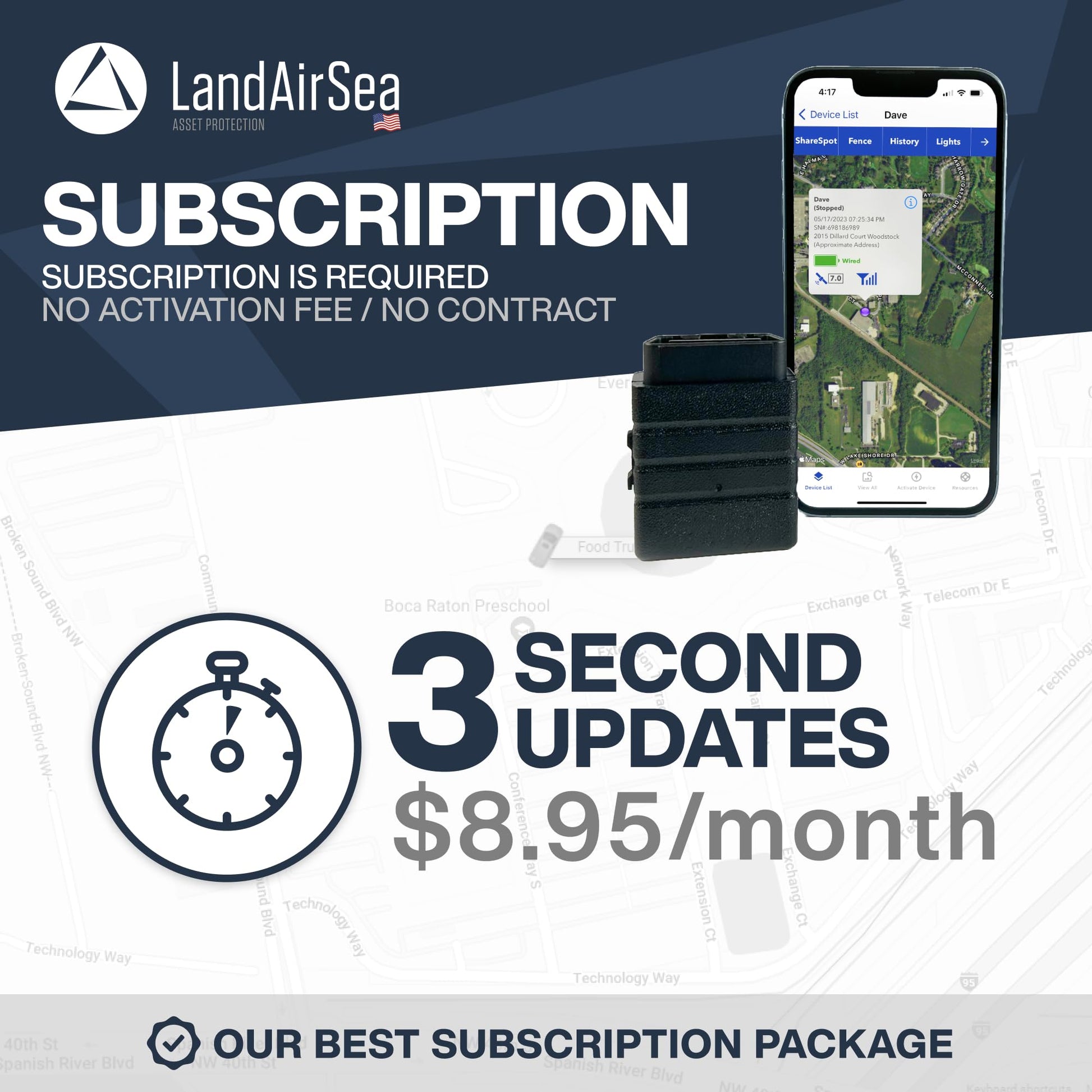 LandAirSea Sync GPS Tracker - 8.95 per month. Full Global Coverage. 4G LTE Real-Time Tracking for Vehicle, Asset, Fleet, and Elderly.