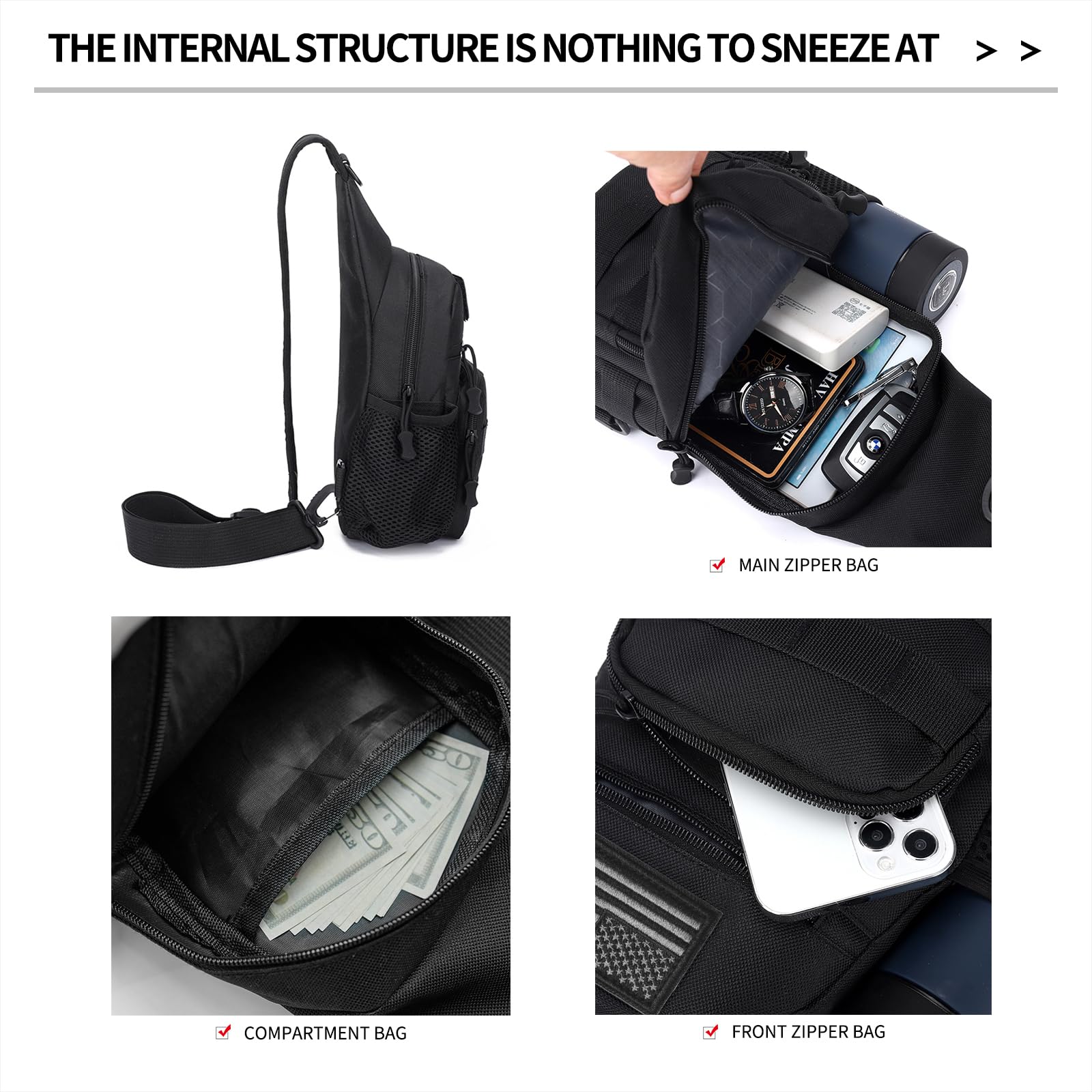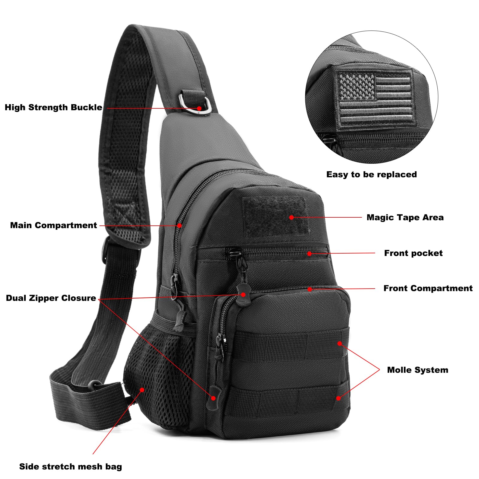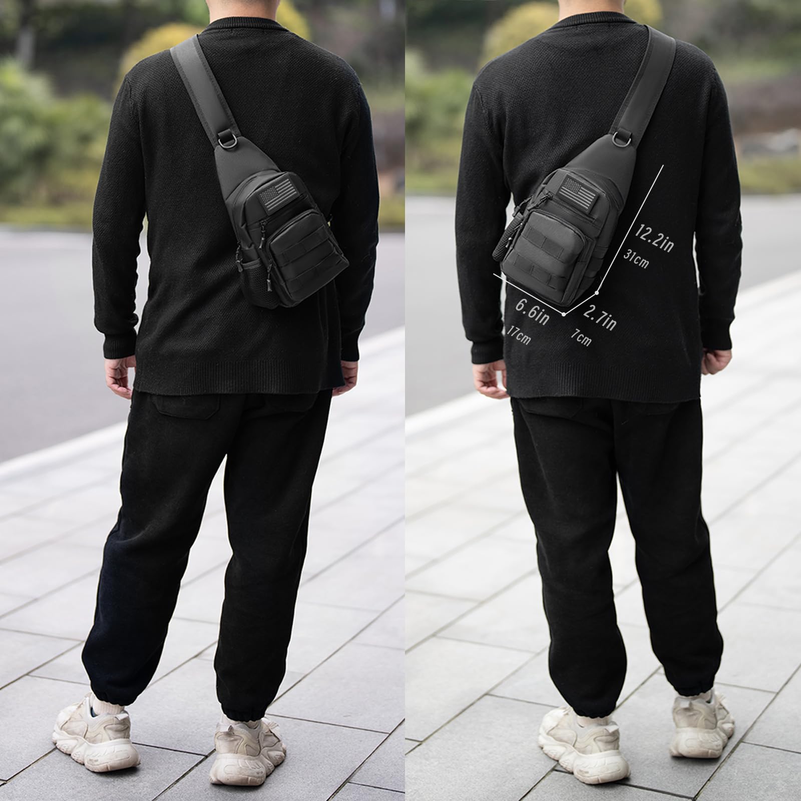 Tactical Sling Bag with Flag Patch - Waterproof Military Backpack for Hiking, Hunting, Fishing - Crossbody Bags for Men, Chest Bag, Molle Army Backpack