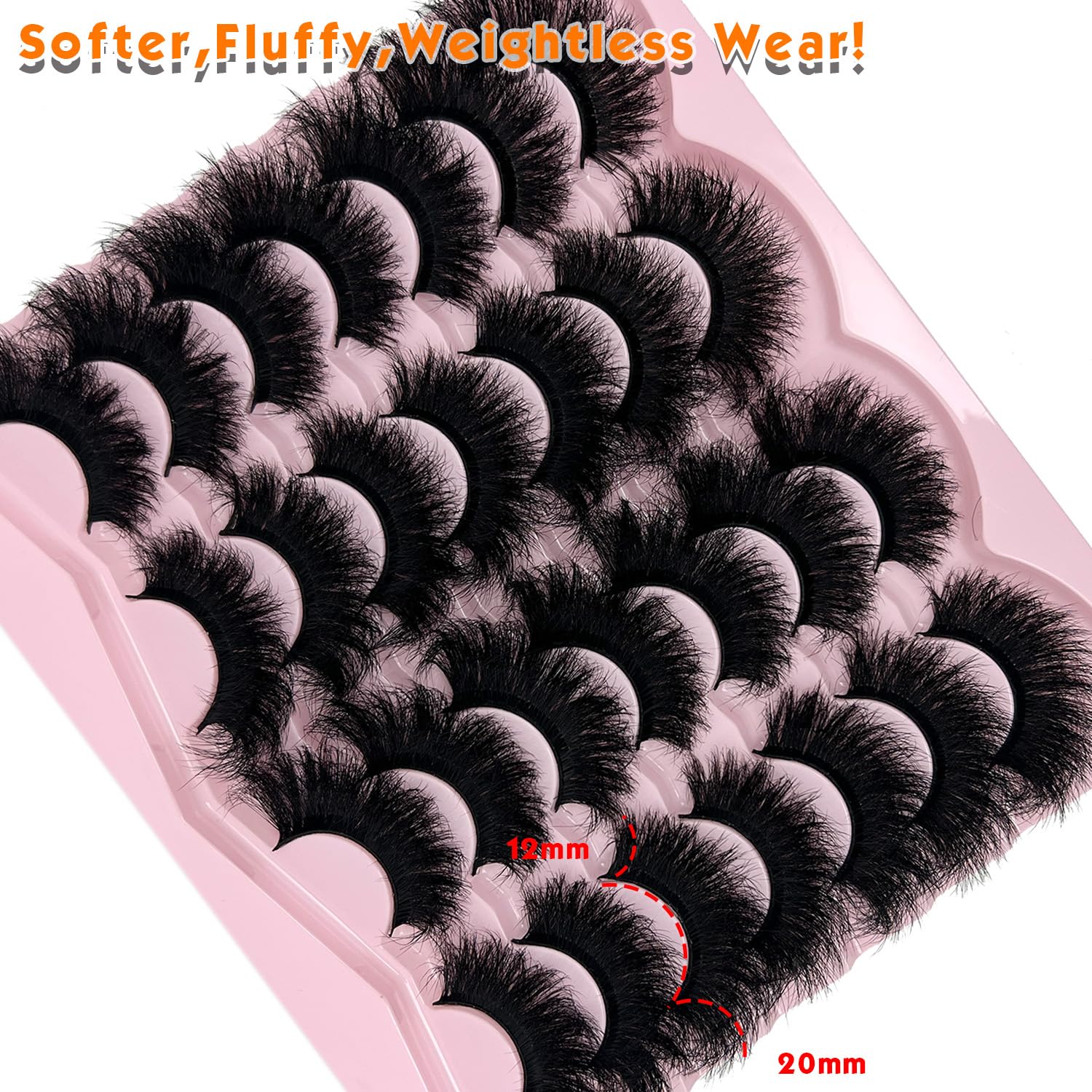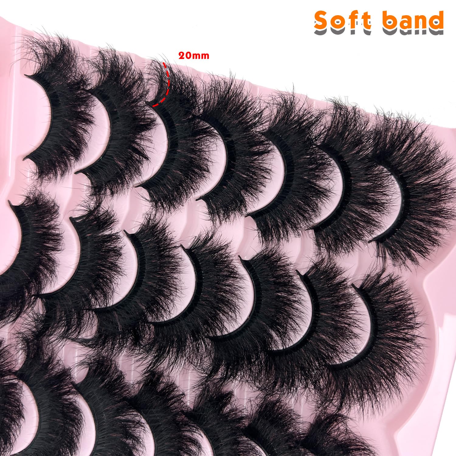 loladook Mink Lashes Fluffy 20mm Big Faux Mink Strip Lashes Cat Eye Long False Eyelashes Dramatic Soft 25mm 3D Volume Eyelashes 14 Pairs