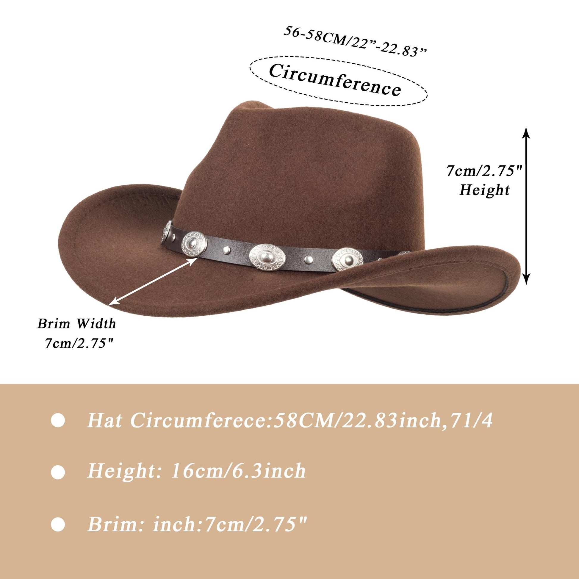 • Material for Cowboy Hat:Our cowboy hats for women is made of Premium Quality felt,soft to touch and breathable, skin-friendly, comfortable for all day wear