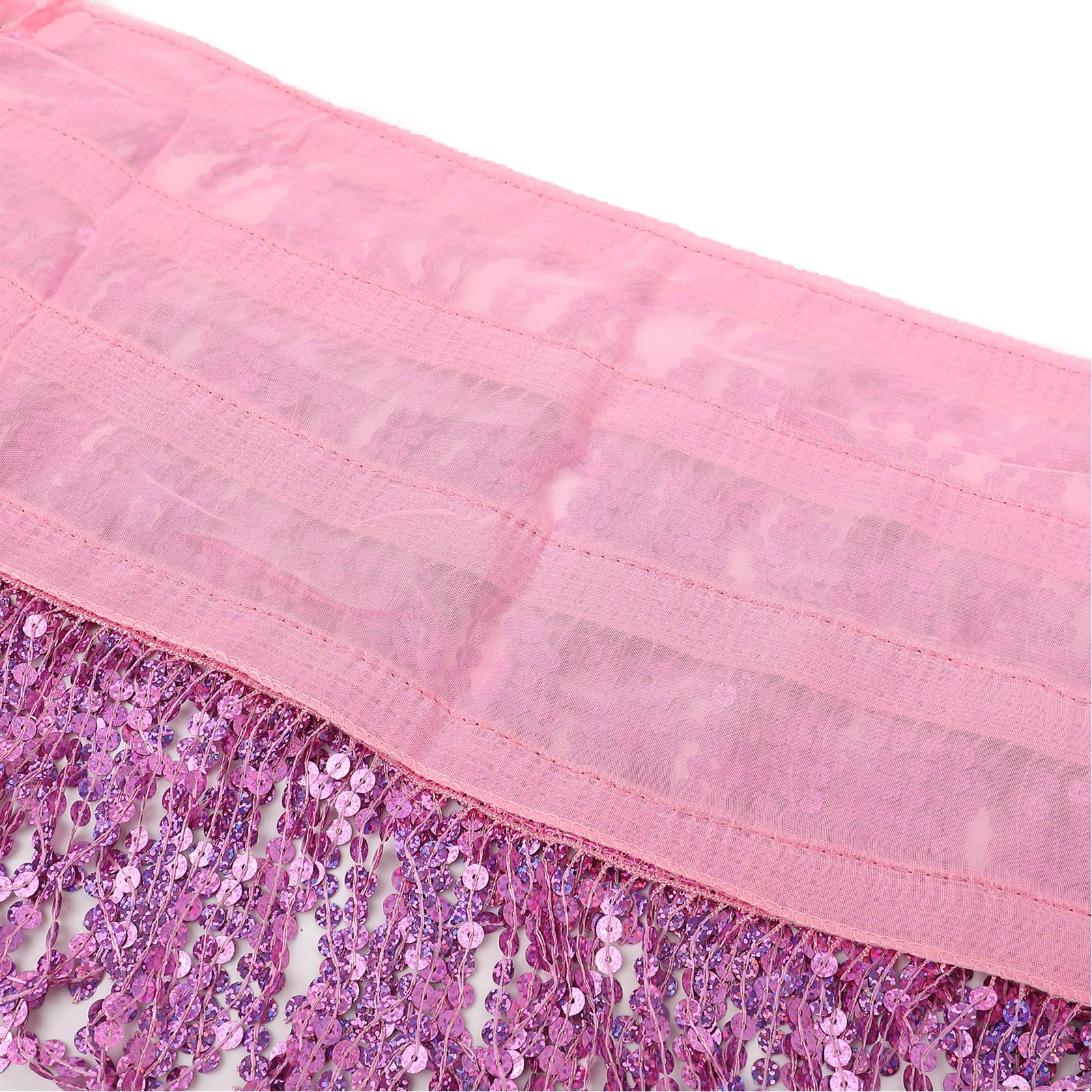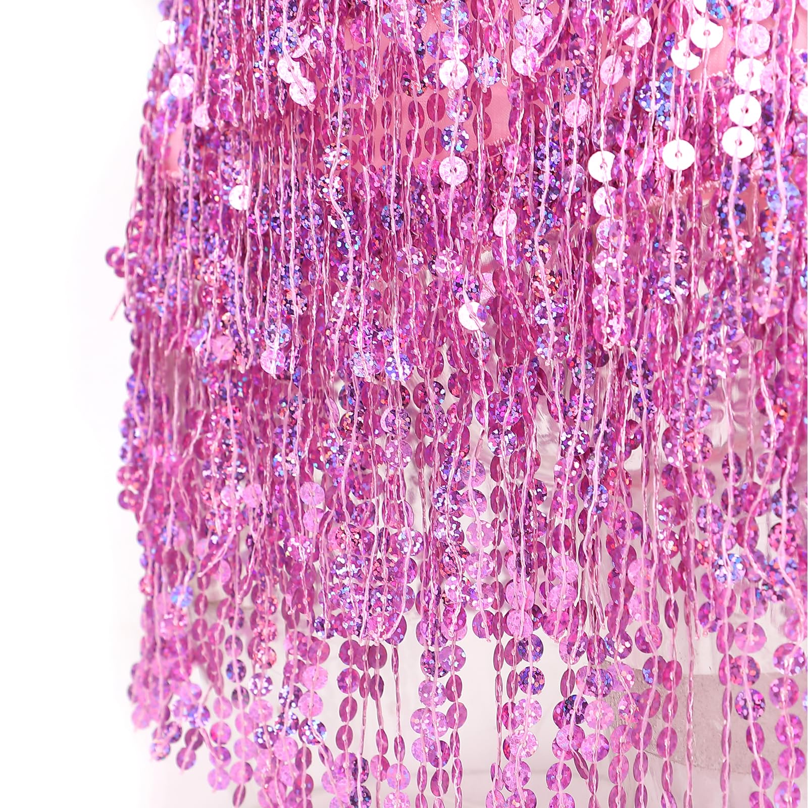 Women's Sequin Tassel Skirts Sparkly Rave Fringe Hip Scarf for Festival Costume(Pink)