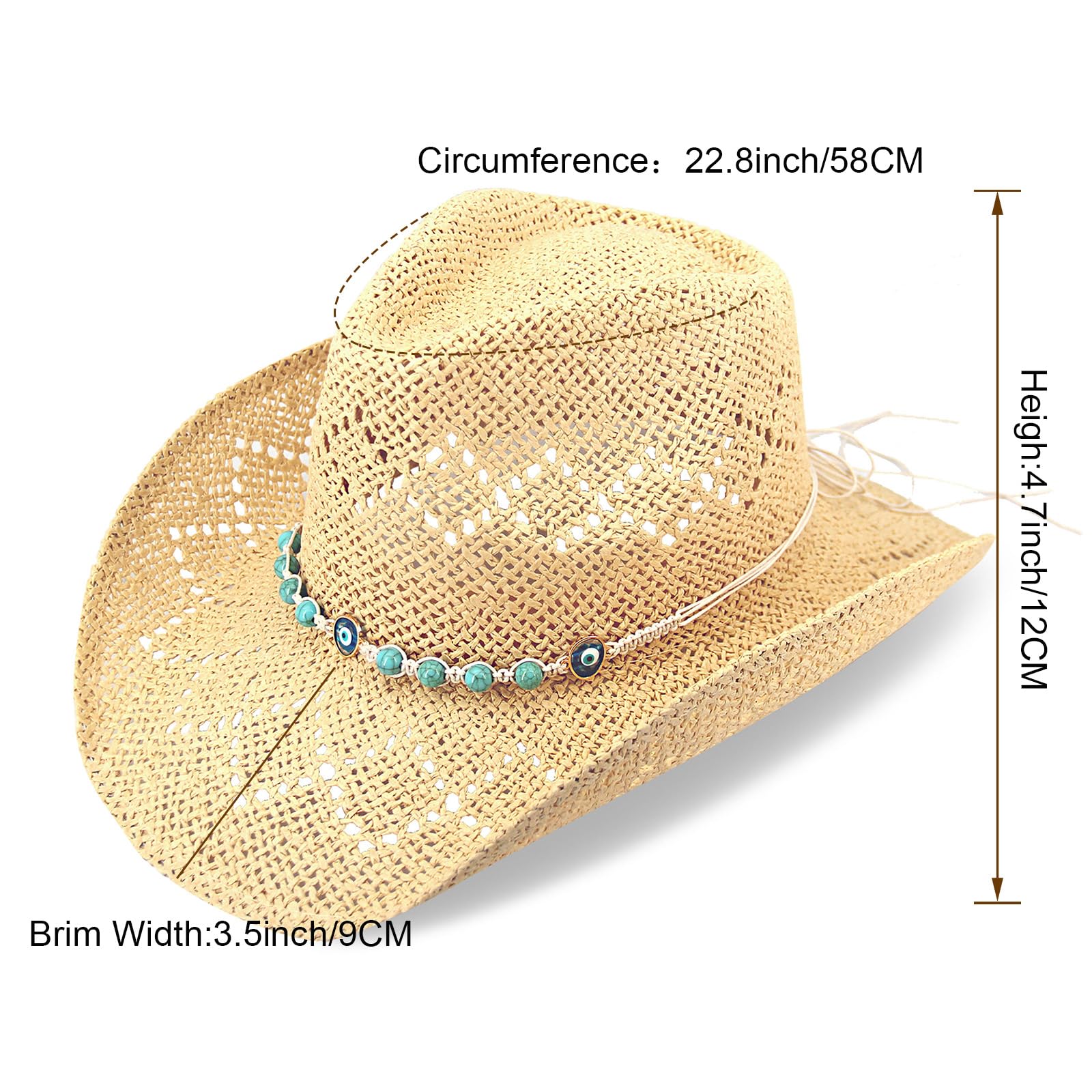 Women's Western Cowgirl Hat Men's Cowboy Hat Straw Cowboy Hat Woven Sun Hat Western HatUnique Two Decorative Bands (US, Alpha, One Size, X-Large, Beige-Eyestone)