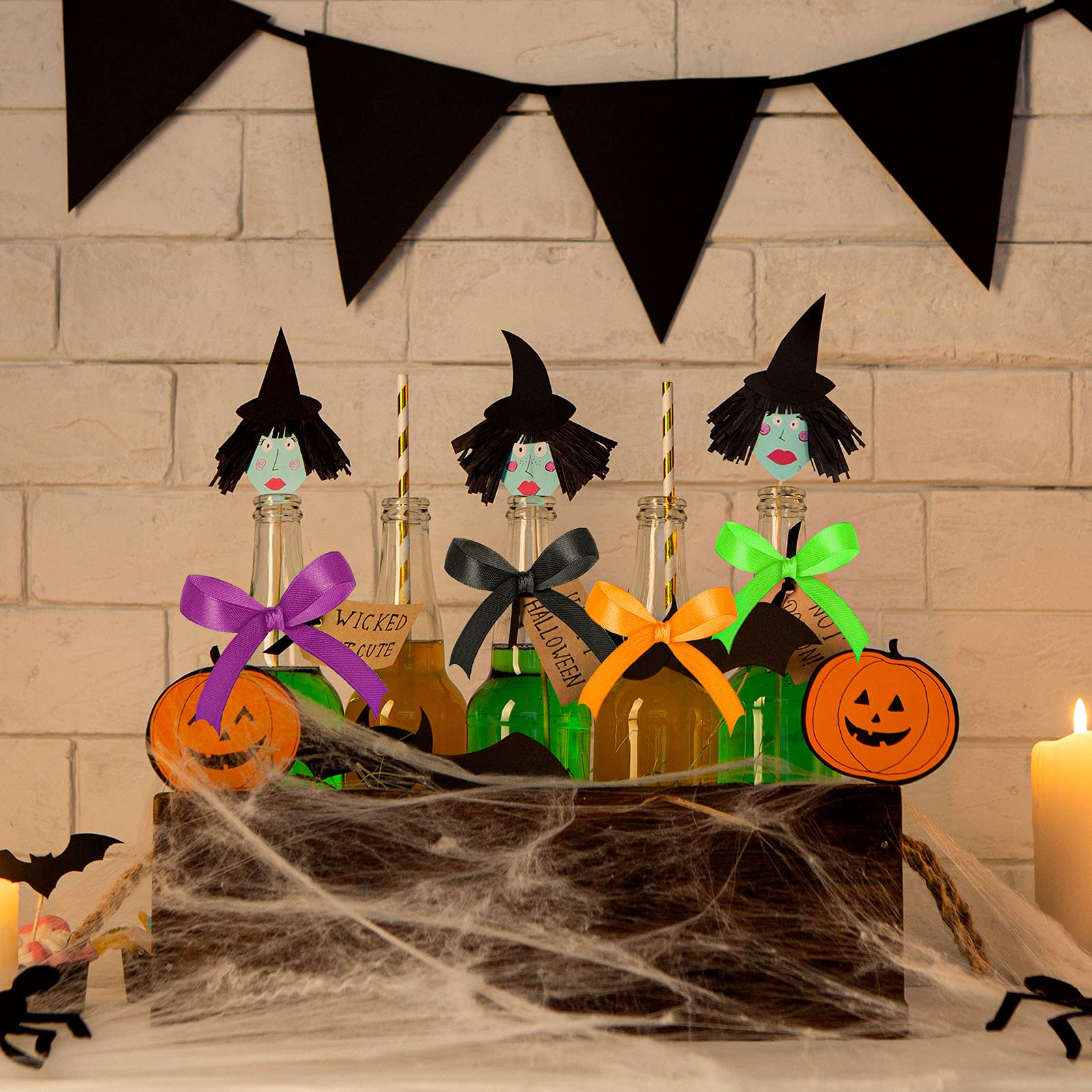 Xinnun 200Yard Halloween Satin Ribbon Wrapping 8 Roll Polyester 3/8 Inch Silk Ribbon for Christmas Halloween Party Decoration DIY Craft Supply(Orange, Black, Purple, Green)