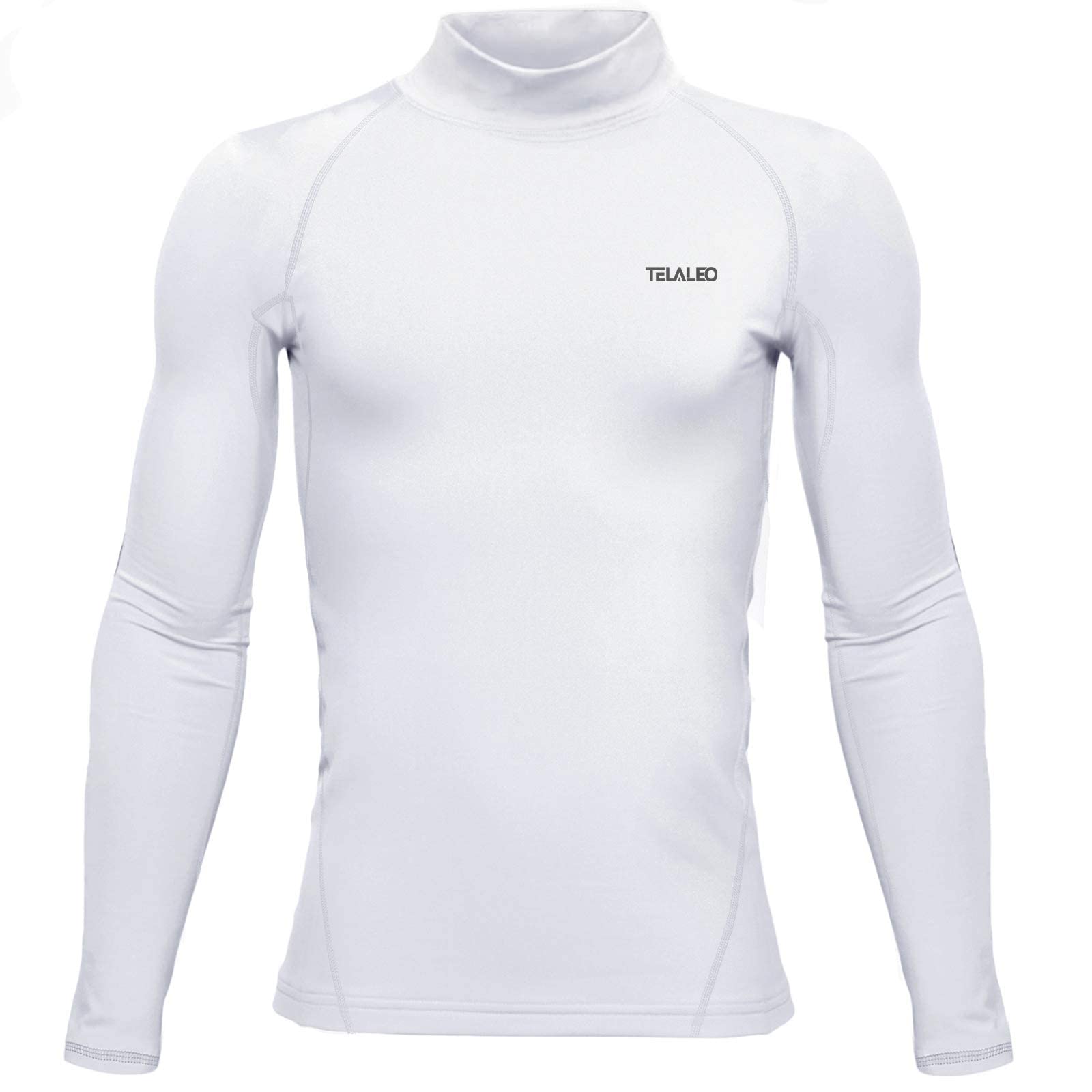 Youth Boys' Girls' Thermal Mock Compression Shirt Long Sleeve Turtle Neck Top Fleece Lined Base Layer Athletic Football Undershirt White M