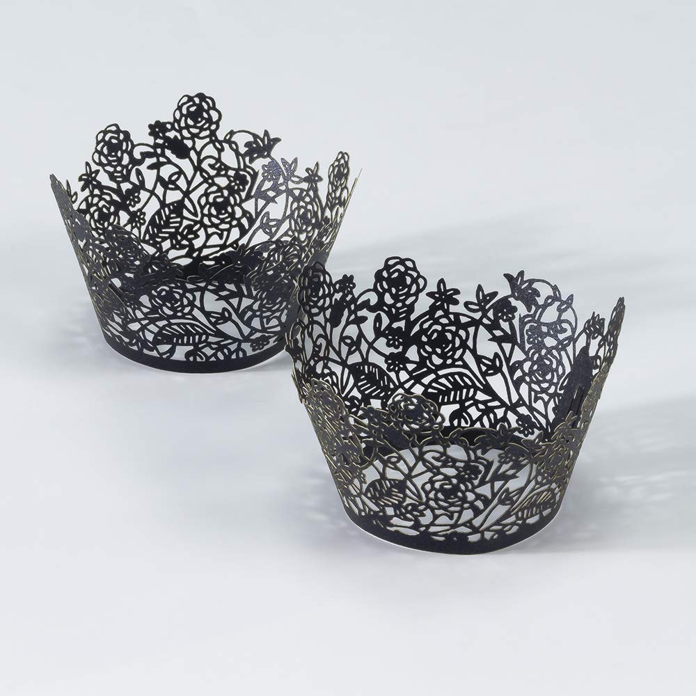 YOZATIA 60pcs Black Rose Lace Cupcake Wrappers Holders, Laser Cut Cupcake Liners Decorative Liners for Wedding Party Birthday Cake Decoration Supplies