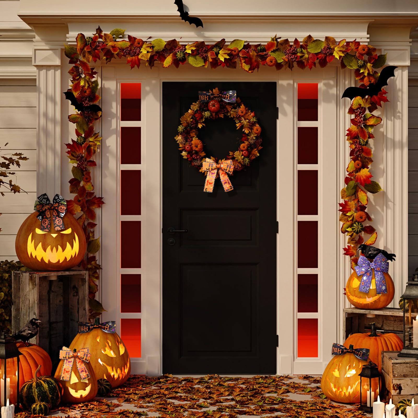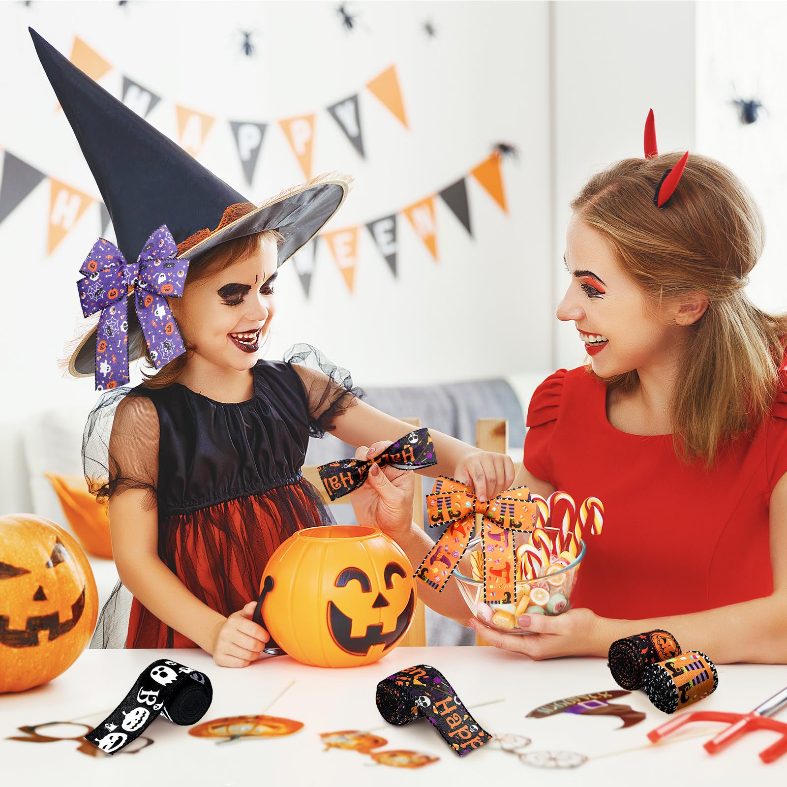 • Enhance Your Halloween Decorations: our Halloween ribbon is the good and delicate accessory to elevate your Halloween decorations; Whether you're adorning your front door, staircase, tables, stairs, railings, candles, lights, trees or even creating your own Halloween inspired centerpieces, our ribbon will add a beautiful and festive touch to many spaces