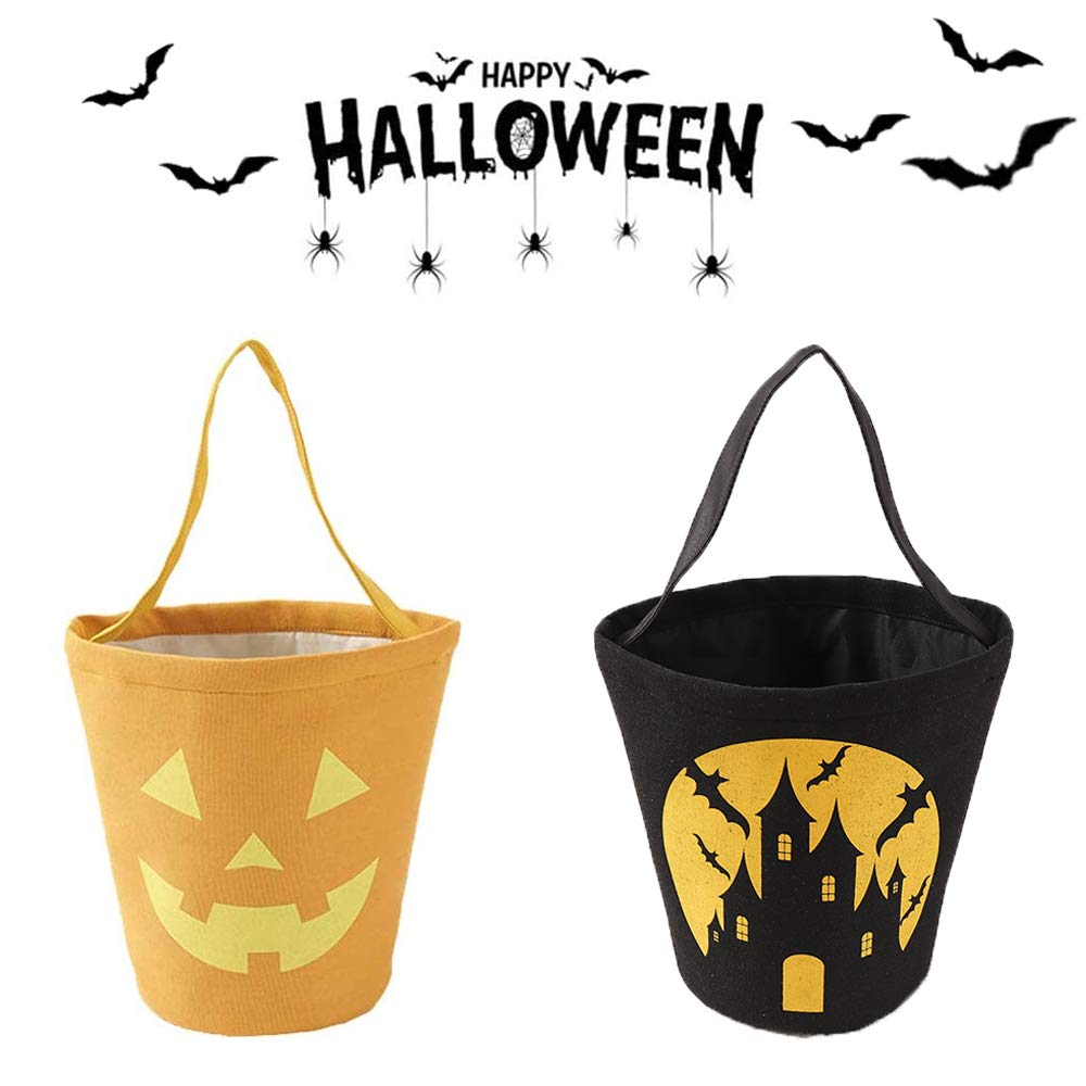Zhenpony Halloween Trick or Treat Bag, Pumpkin Canvas Candy Tote Bucket Multipurpose Portable Collapsible Reusable Goody Bucket - Best Halloween Party Gifts