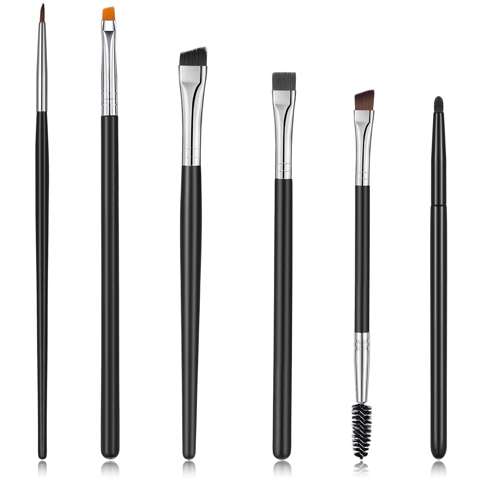 Zopeal 6 Pieces Eyebrow Brush Set Makeup Brush Set Flat Eyeliner Thin Angled Comb Firm Brow Eye Shadow Eyeliner Black Duo Spoolie for Eye Makeup